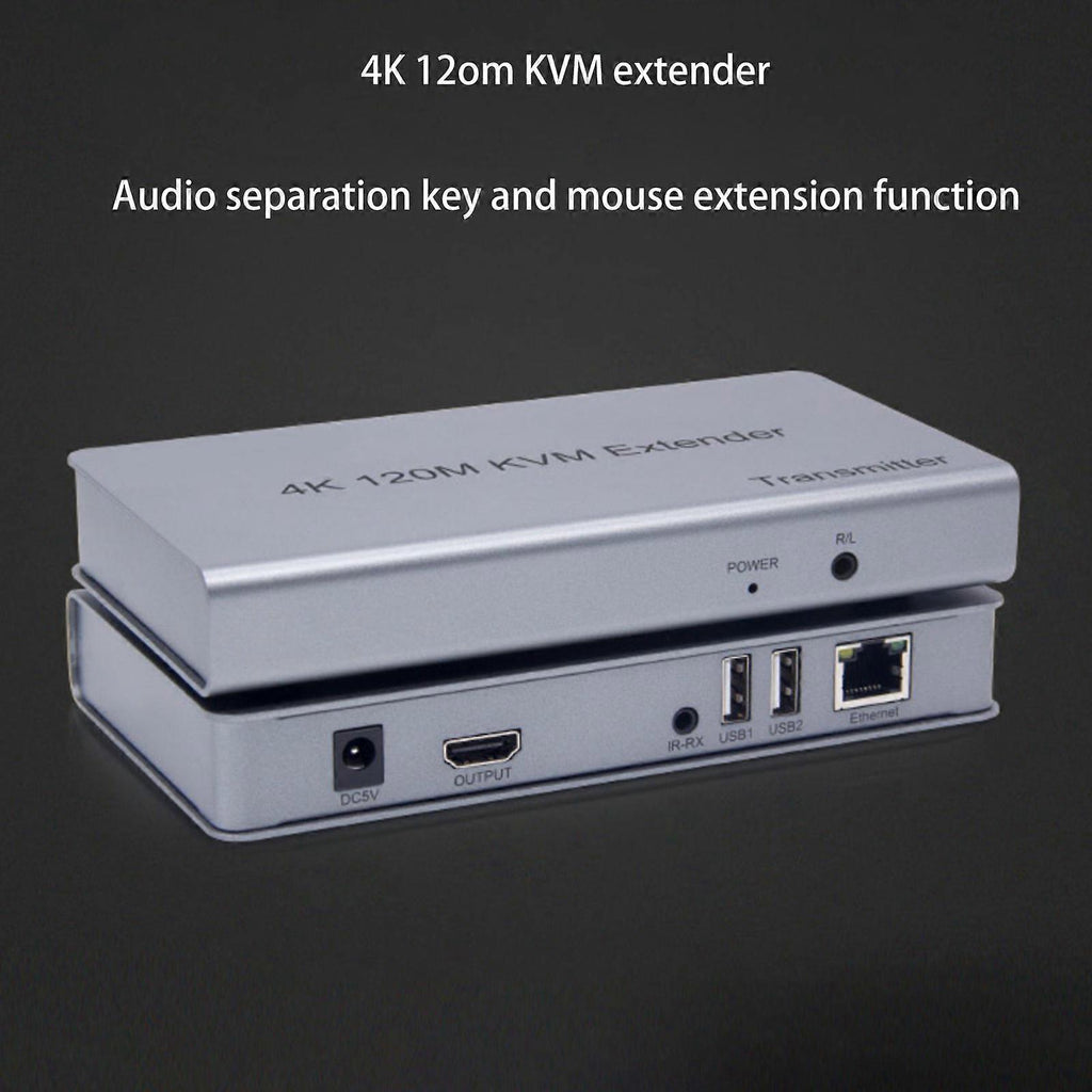 Features: This single network extender replaces the HDMI-compatible cable with a Category 5e or Category 6 network cable (recommended), and can connect. The HDMI-compatible signal is extended by 120 meters. The purpose of the extender is to realize long-distance signal transmission. With HDMI-compatible ring out x120m long-distance transmission negotiation consultation. Category 5e/6 network cable (120M) HDMI-compatible cable. Loop out signal,low power consumption, low temperature, high security. Both the transmitter and receiver support 3.5MM left and right channel audio output.Support USB mouse, keyboard extension.HDMI-compatible input Category 5e or Category 6 network cable between receiver and transmitter 4k/1080p/720p/576p/576i/480p/480i Up to 120 meters feedback comments. Specifications: Material:Metal Color:Gray Size:Approx.16.3x8.5x2.4cm/6.42x3.35x0.94in Support: HDM11.4/HDCP1.4 Support: infrared IR control HDMI-compatible Output: 4k/1080p/720p/576p/576i/480p/480i Max Transmission Bandwidth: 340MHz Max Transfer Rate:3x3.4Gbps Input Video Signal: 0.5~1.5Volts p-p Output DDC signal: 5Volts p-p (TTL) Power adapter specifications: AC input (50HZ60HZ) 100V-240V; for DC output 5V/1A Operating temperature range: 0+45 Operating humidity range:5 to 90%RH (non-condensing) Note: Please allow 1-2cm errors due to manual measurement,pls make sure that you do not mind before you order. Due to the difference between different monitors, the picture may not reflect the actual color of the item. Package includes: 1x 4K KVM Extender