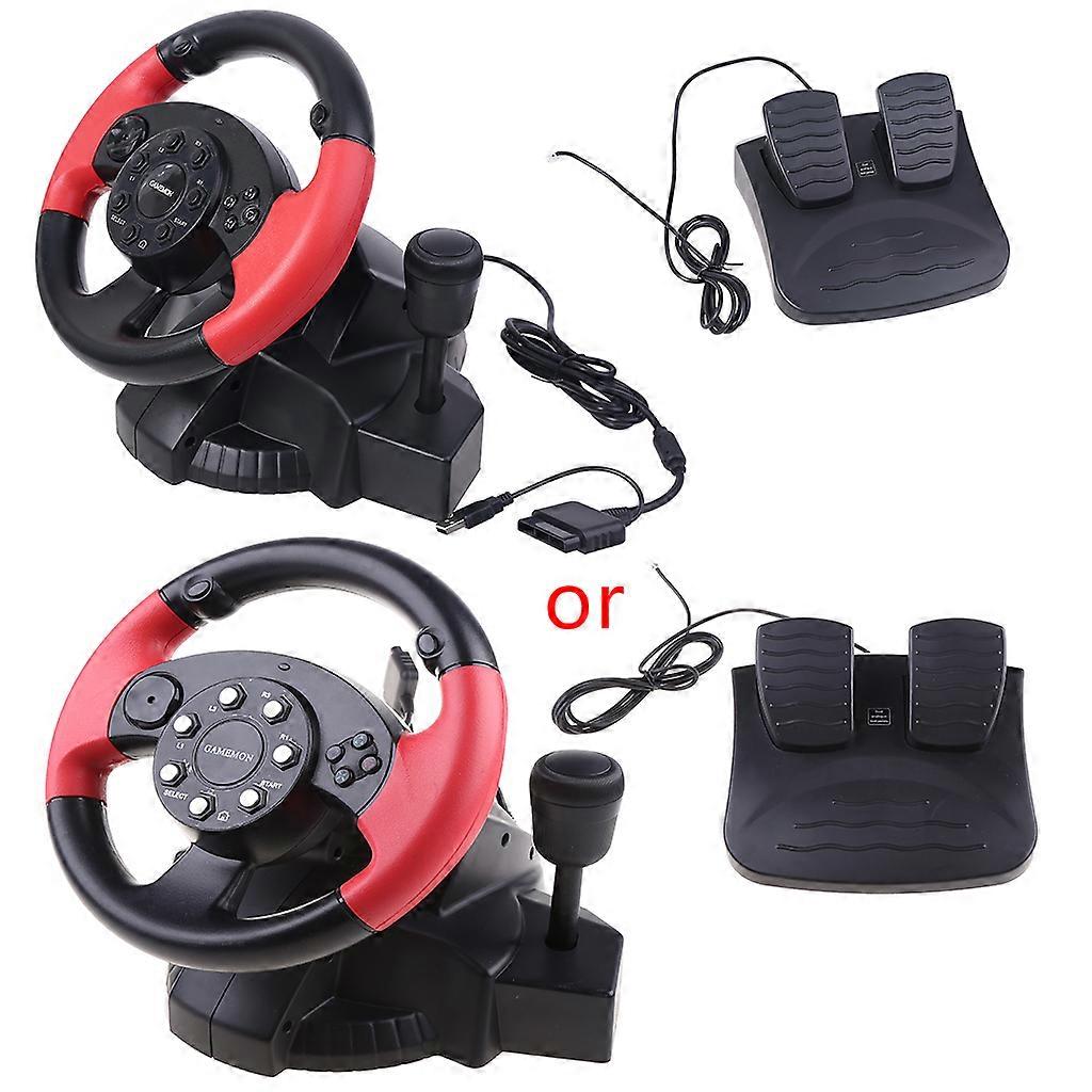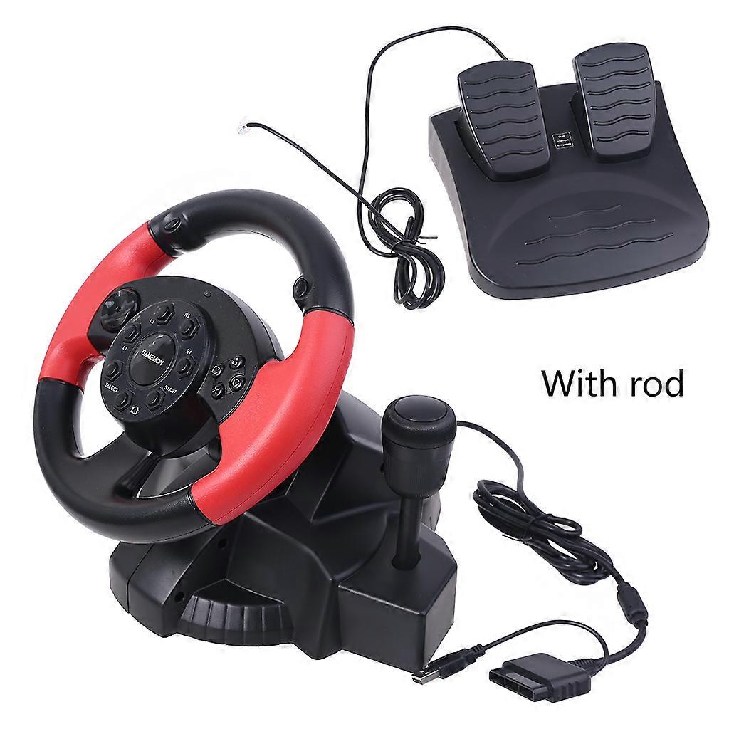 and high quality Our gamepad features 200 degree rotation angle for easy to control of the game to give you nice experience, providing a high simulation vibration game experience, enjoy the thrill and passion of every impact! Features: 1. Wide compatible ability: It is for for PS 3/PS 2/PC (D-INPUT/X-INPUT/Steam) game platform. 2. Give thrill and passion: Built-in simulation dual motor, providing a high simulation vibration game experience, enjoy the thrill and passion of every impact! 3. Easy to use and stable: Plug and for play, support hot swap. Four large suction cups make the product more stable on the table. 4. Rotable: It features 200 degree rotation angle for easy to control of the game to give you nice experience. 5. for for Win9x/ME/2000/XP/Vista32/Vista64/WIN7/WIN8/WIN10 Specification: Style: FT33D3 (without rod) / FT33D7 (with rod) Tip: The default X-INPUT mode on the PC; from the X-INPUT mode to the PC-D-INPUT mode, press the HOME button for 5 seconds and the vibration can be switched. Material: ABS+PVC Connection: USB Size: about 27.5x22.5x28.5cm/28x26.5x27.5cm 10.83x8.86x11.22in/11.02x10.43x10.83in Gross weight: about 1.8kg/2.1kg Introduction: 1) 2 axis variables, D-PAD and 10 independent buttons. 2) Built-in 2 high simulation motors to make the game more fun to drive. 3) Automatic face return function. 4) 220 MM large size disk surface, experience the real racing feeling. 5) Linear analog signal pedal. 6) The pedals are equipped with a spring device to give the throttle and brake pedal a sense of foot, so that the player has the driving pleasure. 7) The steering wheel is connected to the host with a 1.8-meter USB cable, and the pedals are connected to the steering wheel. 8) Support D-INPUT and X-INPUT modes on the computer platform, and easily adapt to different game setting parameters. New game plug and for play. Note: Please allow 0-1cm error due to manual measurement. pls make sure you do not mind before you bid. Due to the difference between different monitors, the picture may not reflect the actual color of the item. Thank you! Package includes: 1 x Gamepad 1 x Manual 1 x CD- 1 x Pedal