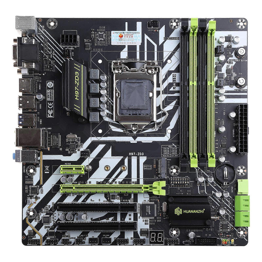Features: and high quality Perfect match: According to the original model design, perfect replacement installation, high-quality components,Support for Intel LGA1150 DDR3 Non-ecc memory. Quick start, loading and file transfer. Low power consumption, quiet, reliable and durable. Durable material: This product is made of high-quality material, durable, long service for time, firm and stable in use. Compact and portable: being so mini and light-weight, this product does not take much space and can be easily taken away. Meticulous workmanship: The meticulous design, perfect in workmanship, durable and long service for time. Specifications: Model:HUANANZHI H97-ZD3 Motherboard CPU Socket:Support for Intel LGA1150 Memory Socket:4xDDR3 Memory Socket Memory Standard :Support Dual channel DDR3 1600/1333MHz Maximum Memory Capacity 32G SATA:5xSATA3.0 Interface Extended interface:IO: 1xPS/2 Mouse/ keyboard interface, 2xUSB3.0. 4xUSB2.0, 1xGigabit Ethernet Card, 3x3.5MMAudio interface; Expansion pin:1x9pin USB2.0; 1x19pin USB3.0; 1xFront audio output pin Expansion Slots:1xPCI Express3.0X16, 1xPCI ExpressX1, 2xPCI, 1xM.2 NVME/NGFF Soud Track:ALC662 5.1 Sound Track Network lnterface:RTL8111H Gigabit Ethernet Card Power interface:24pin+8pin Fan interface:4 PCB ayer :6 laver, 4Phases Dimension:approx. 243x243mm/9.57x9.57in M-ATX Note: The platform needs powerful power. Please make sure your power supply is sufficient to support it(at least 500w power supply) . Please allow 1-3mm differs due to manual measurement. Due to the different display and different light, the picture may not show the actual color of the item. Thanks for your understanding. Package includes: 1PC x Motherboard