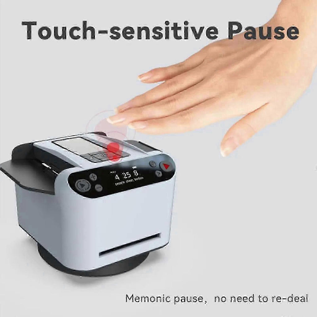 Upgrade your card games with the 2024 New 2 in 1 Licensing and Shuffling Machine. This innovative device combines the functionalities of a card dealer and shuffler, offering seamless gameplay for multiplayer games. With a 360 rotating mechanism and electronic random dealing, this machine ensures fair and efficient card distribution. Product Information: Name: 2024 New 2 in 1 Licensing and Shuffling Machine Material: ABS Display: OLED display Interface: Type-C 5V Battery: 5200mAh Size: 16.2 x 12.7 x 11.6 cm / 6.37 x 5 x 4.56 inches Weight: 860g Functionality: 360 Rotation: Clockwise and counterclockwise dealing, ensuring comprehensive card distribution. Dealing Modes: 360 rotation, left/right swing dealing, and directional dealing for versatile gameplay. Support for Multiplayer Games: Designed to handle multiple players efficiently. Fast Physical Shuffle: Quick and reliable shuffling mechanism. Electronic Random Dealing: Ensures fair and unbiased card distribution. Shuffle Dealing Sensing: Advanced sensing technology for precise shuffle and dealing. Package Includes: 1 x Card Dealer & Shuffler 1 x Charging Cable 1 x Manual 4 x Remote Controls Additional Information: Enhance your card game experience with this state-of-the-art 2 in 1 Card Dealer & Shuffler. Its robust design, advanced features, and user-friendly interface make it an ideal choice for both casual and professional players. Order now and bring a new level of excitement and fairness to your card games!