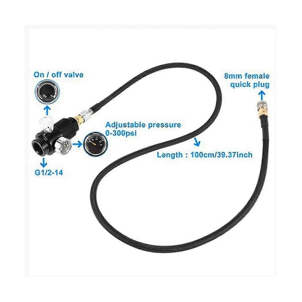 It can be mounted in an or tank. It can also be used in the CO2 tank.Fine workmanship and perfect style.Easy to install and durable in use.With a pressure range of 0-200 and compact design, it is a .Regulator with 100cm FLEX Remote Hose 0-200 to Co2 Tank CylinderWith a pressure range of 0-200 and compact design, it is a .It can be mounted in an or tank. It can also be used in the CO2 tank.Compatible tanks: , or Co2 tanksInlet pressure: 800-1000psiPressure range: 0-200 Weapon Compatibility: UniversalRemote Hose: 100cm longMaterial: Metalcolour: blackPackage Contents:2 x RegulatorOnly the above package content, other are not included.Note: Light reflection and different displays may cause the color of the item in the a little different from the real thing. The measurement allowed error is +/- 1-3cm.