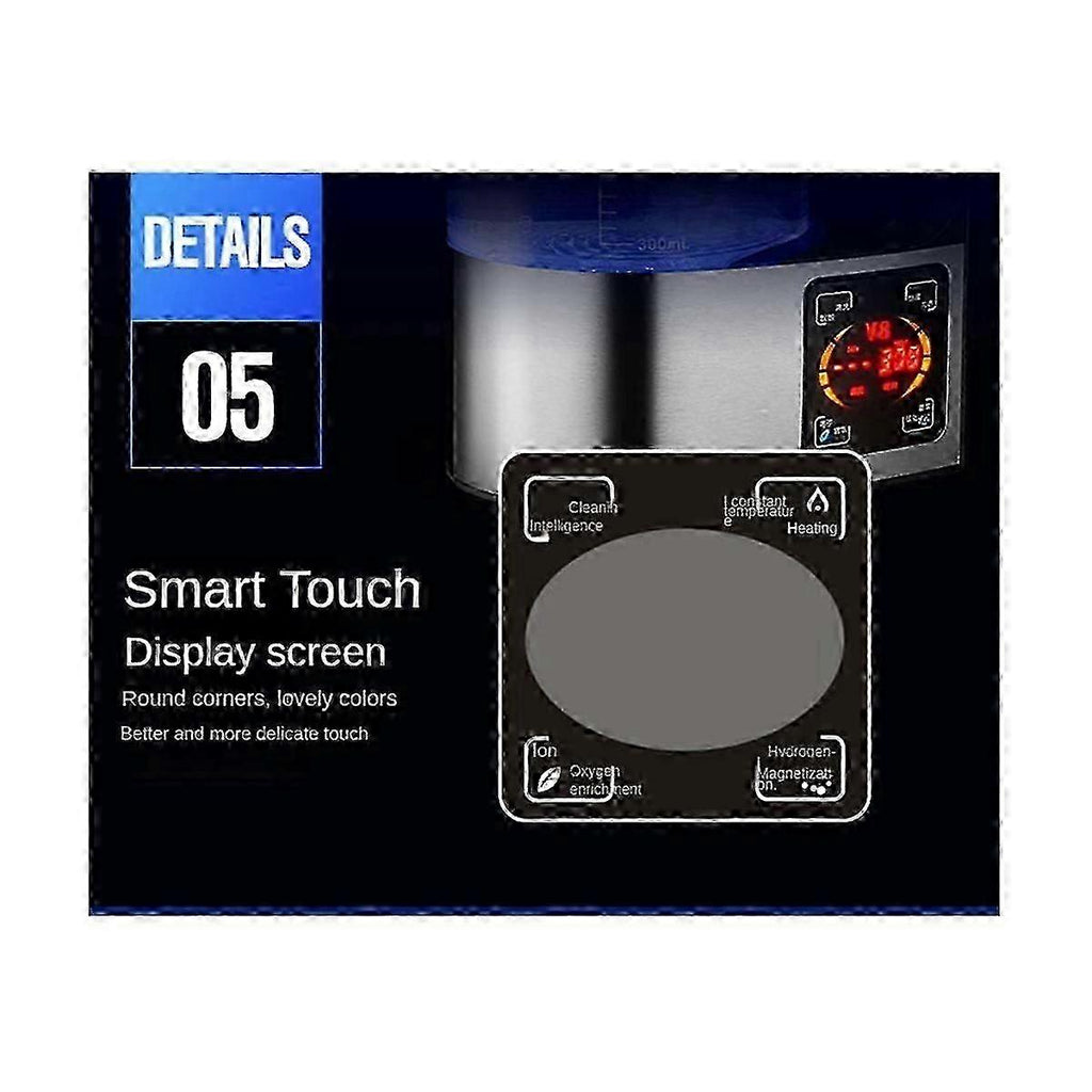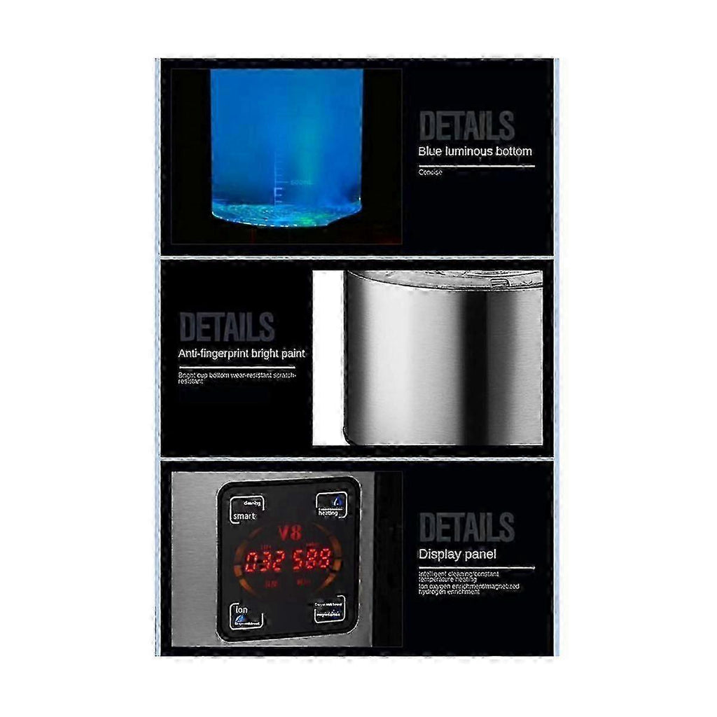 Shop name:Chong Qing Shuo Yue Ke Ji You Xian Gong Si Install drinking water: first fill mineral water, plug in the power plug after filling the water Ion oxygen-enriching function: Touch the "ion- oxygen" button, the system enters the negative ion state. If you touch the "ion- oxygen" button again, the system exits the negative ion state. Constant temperature heating function: Press the constant temperature heating key, the display shows the real-time temperature of the current water, and start the automatic intelligent constant temperature to 35 5 , and automatically shut down after 1 hour without operation. Intelligent cleaning function: Press the intelligent cleaning button, the blue and green lights flash, and the system will automatically shut down after the intelligent cleaning is completed. Hydrogen- magnetization function: Touch the "Hydrogen- magnetization" key to enter the low-water-making state of hydrogen- water, and touch the "Hydrogen- magnetization" key again to enter the system of hydrogen- water to make water. "Hydrogen- magnetization" button, the system enters the state of hydrogen- water deep water production. If you touch the "hydrogen- magnetization" button again, the system stops the hydrogen- water production state Product name: Hydrogen water machine Cup body material: high borosilicate glass Weight: 0.65kg Use temperature: 0-40 degrees Celsius Hydrogen concentration: 0.8-1.2PPM Capacity: 2000ML Hydrogen production capacity: 1000-1200PPD Heating power: 200W-350W Electrolysis power: 20W Plug Type: US Plug, it applies to Canada, India, Mexico, Thailand, Taiwan, the , the Philippines and so on. Voltage: AC110V Colour:Photo Color Material:PP+glass Size:190 x 125 x 275mm Package Contents: 1 x Hydrogen water machine Only the above package content, other products are not included. Note: Light reflection and different displays may cause the color of the item in the picture a little different from the real thing. The measurement allowed error is +/- 1-3cm.