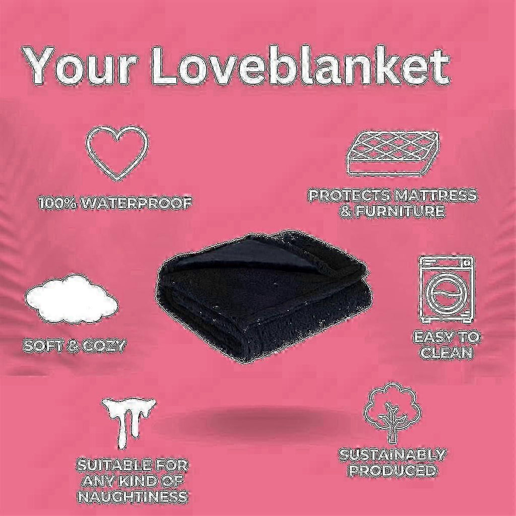 Loveblanket - The Waterproof Blanket Love Blankets for Couples Waterproof Splash Blanket for Bed Intimacy (Black 40 * 57in) Keep your bed Clean and DrySpecially designed loveblanket - the waterproof blanket, with special waterproof treatment on the middle layer, keeps your bed safe from accidents. Never worry about dampness and bad odors again Luxuriously SoftHigh quality and soft material, double-sided plush, moisture-absorbent, breathable and wear-resist. Warm against the skin, loveblanket - the waterproof blanket creates a cozy atmosphere. Easy to Cleanloveblanket - the waterproof blanket is generally easy to clean and can be machine or hand washed, making it easier to care for and keep clean. Multiple Colors and SizesWe offer loveblanket - the waterproof blanket in three colors and five different sizes to meet your different needs. Multifunctional Designloveblanket - the waterproof blanket is double-sided, providing high-quality waterproof protection, perfect as a bed sheet, sofa blanket or camping and outdoor use, and can also be used as a pet pad.