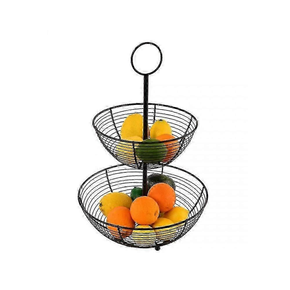 Tiered fruit basket made of powder-coated steel bars. It can be used to store fruit or vegetables. The basket looks fantastic both on the kitchen counter and on an elegant table. It fits perfectly into modern-style interiors. Specification: Diameter of the lower basket: 26 cm Diameter of the upper basket: 22 cm Total height: 30 cm Comfortable handle