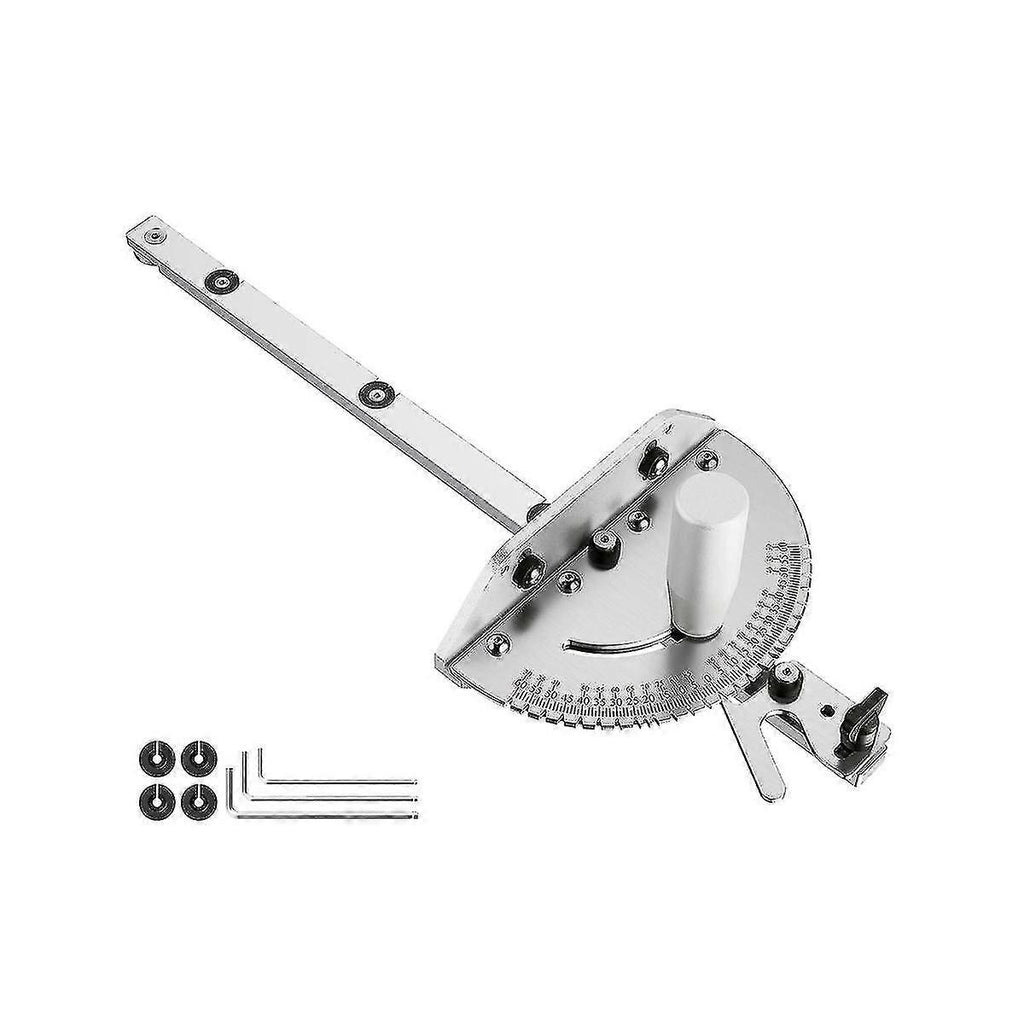 [Precise Angle Cutting]It features 27 angle indexing stops with 5-degree step spacing and Dial allows between 90 to 30 degrees of angle adjustment while the protractor head features positive stops at 0, 10, 22.5, 30, 45, 60, 67.5, and 90 degrees (both left and right). When you to cut a more complicated angle, the gauge dials to precise angles as the adjustable scale. [Perfect for Wood Cutting]It can be used for table saws, band saws, router , etc. both sides 60 angle adjustable, perfect for crosscutting wood at a angle. The fence comes with a flip stop that makes repetitive cuts a breeze. [Simple Operation] 3/4-inch (19mm) miter gauge groove fits most standard 3/4-inch table saw slots (measure slot on your table saw to exact fitment); The slide bar has a locking washer that fits snugly into the with a matching groove; the flip stop to the exact position you need it to be, lock it in place and you're to go. [Premium Material] This woodworking tool is made of alluminium . Protractor gauge head constructed from solid steel that are machined by precision computer numerical control, square to the bar and your table. engraved scale marking technology is friction-resistance to accuracy. Colour:silver Material:aluminum Package Contents: 1X Precision Miter Gauge Only the above package content, other products are not included. Note: Light reflection and different displays may cause the color of the item in the a little different from the real thing. The measurement allowed error is +/- 1-3cm.