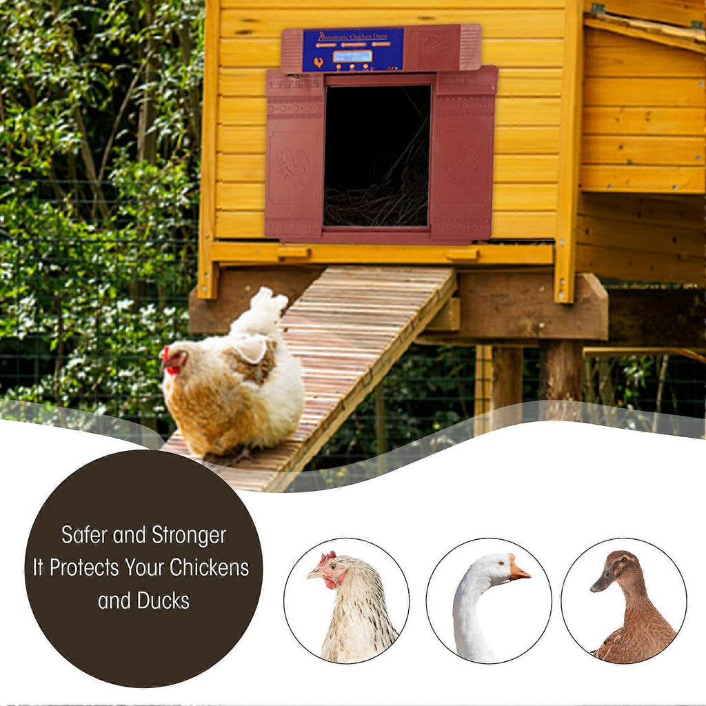 5Applicable Range: This automatic coop door opener is suitable for chickens, ducks, geese, and other suitable poultry, providing convenience while protecting poultry and resisting invader.