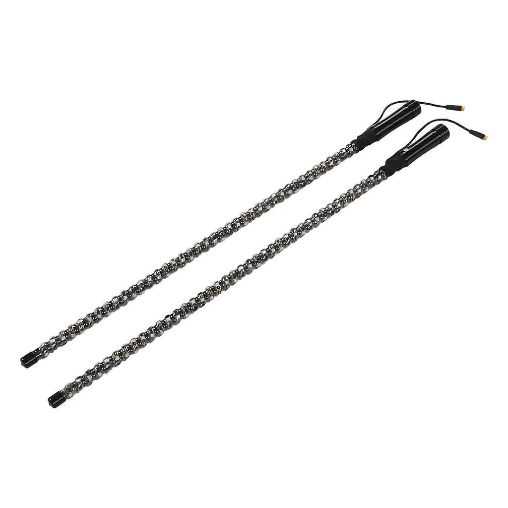 Features: 1.Colorful LED Light: Supports 360 lighting, 380 RGB LEDs with 20 luminous colors, 300 patterns, 366 modes, 32 brightness and 10 speed settings. 2.Durable Material: The black LED strips are held together by EVA and silicone tubes to ensure maximum durability without breaking when hitting some branches. 3.Sound Activation: When you're camping or stopping to play on the beach, activate the voice activated mode with one click, and the lights will flash to the rhythm. 4.Remote Control: These whips lights can change color and chase color by pressing a button on the wireless remote, with a transmission distance of 10 meters. 5.Installation: Just slide the quickly disconnected base up to release, place the LED whip, connect the power cord, and finally control the light through the remote control. Specification: Item Type: LED Whip Lights Material: Shell: EVA, silicon; base: aluminum; wire: PVC; mark: nylon LED: 380 RGB per pair Glow Color: 20 colors to choose from (RGB, blue, red, green, white, yellow, orange, pink, purple, and custom configurations) Patterns: 300 patterns (chase, accumulation, strobe, flash, etc.) Modes: 366 modes, Brightness: 32 levels, Speed: 10 levels Lifetime: More than 50,000 hours Waterproof: IP67 Operating Voltage: 12-24V DC Operating Temperature: -40 to 58 Overload Protection: Equipped RF: 433Hz Remote Control Distance: Approx. 10m/32.81in Remote Control Battery: 1 x CR2032 3.0V 210mAh button battery (built in) Application: Universal fit, suitable for all types of vehicles including UTV, ATV, off road vehicle, boat, replacement for RZR Characteristic: 1. Two voice control modes are added to the remote control (with display video), which is convenient for you to start with one button when you stop to play in camping or on the beach, enter the music voice control mode, and the lights will flash with the rhythm 2. The remote control has the function of automatic timing switch 3. 300 patterns and 366 modesshiy