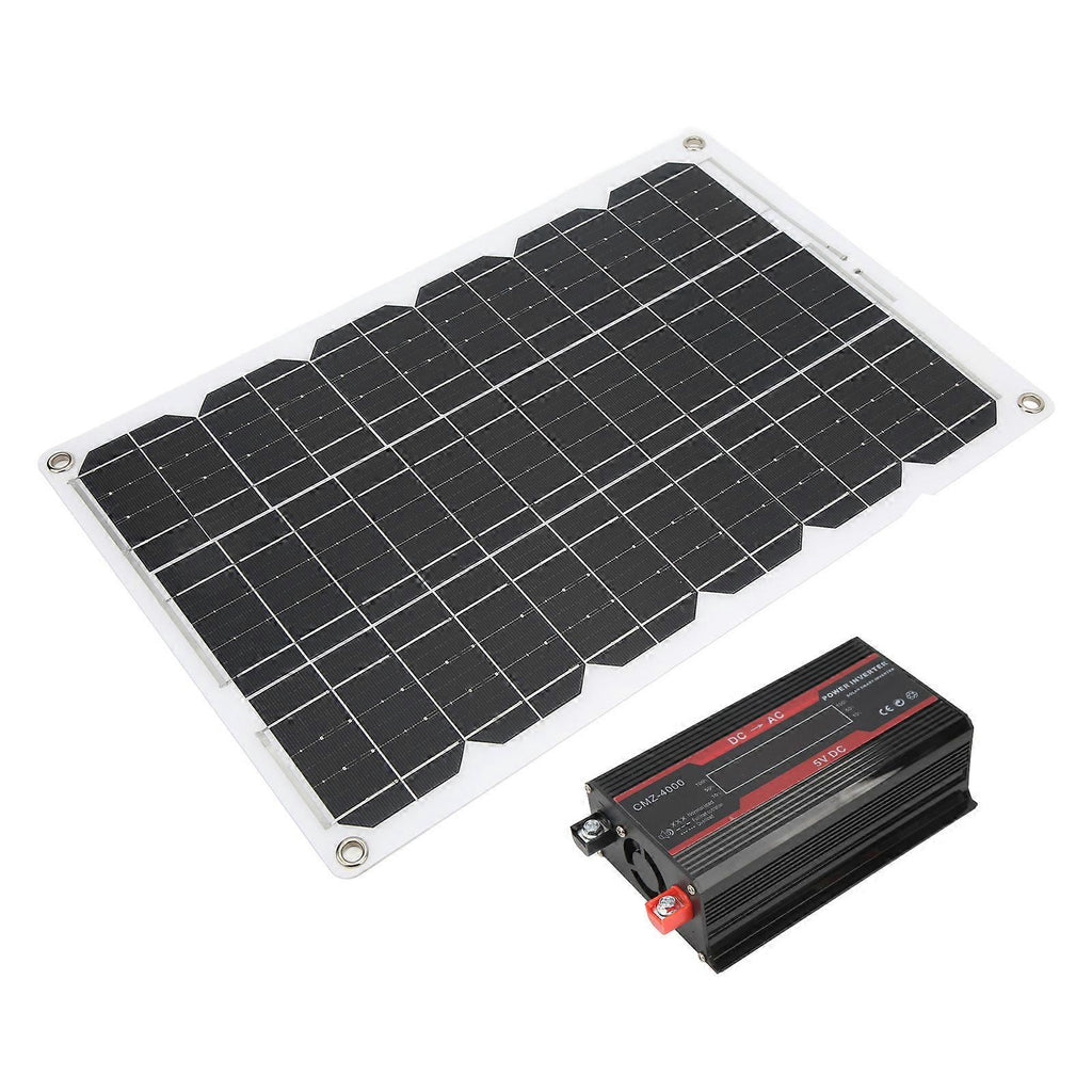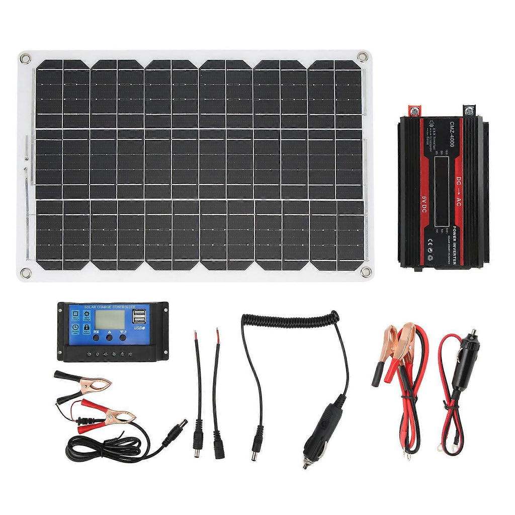 Solar Panel System with Color Display Dual USB4.2A 18W18V Solar Panel 30A12V 24V Solar Controller Inverter for Camping Black 12V to 230V