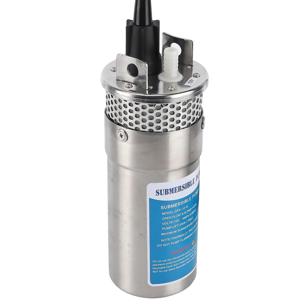 Features 1.12VDC 96W solar submersible water pump, perfect solutions for your remote water needs. It is designed for solar panels and 12V battery systems. Ultra?compact size, easy installation and does not take up space. 2.With 230ft maximum lift and 8. 0Lpm/2.1Gpm super large flow, which can meet your deep well water intake, agricultural and livestock irrigation, garden spraying, industrial water and other fields. The maximum diving depth can reached 30m underwater, even with greater water pressure It can also work normally. 3.304 stainless steel anti?corrosion shell, high strength, high pressure resistance, fast heat dissipation and no leakage, low noise, acid and alkali resistance, corrosion resistance. 4.With hanging holes, the pump can be lifted by a rope bolt (do not use the power cord to pull the bolt), fully sealed terminal, reinforced and sealed double upgrades to prevent the pump head from being affected by water. The water outlet has passed FDA food?grade certification, reinforced and upgraded, and is suitable for use with clamps, and the connecting water pipe is not easy to fall off. 5.50 mesh water filter net, double filter advanced solid diaphragm, can filter most impurities, easy to disassemble, easy to clean, self?priming function, permanent magnet heat protection, over current, over temperature protection, waterproof seal design, quick disconnect connection. 6??Waterproof power connector prevents water wicking and prevents potential condensation problems. Super powerful and widely used. Great for livestock water, irrigation, pond rationing, remote houses and cabins, also can be used for RVs, yachts, ships, homes, outdoors, etc. Specification Item Type: Submersible Water Pump Material: Stainless Steel Flow: 8. 0Lpm/2.1Gpm Pressure: 100Psi/7. 0Bar Voltage: 12V Current: 8. 0A Maximum Lift: Approx. 70m/229.7ft Maximum Diving Depth: Approx. 30m/98.4ft Speed: 2850/min Insulation Class: Class B Frequency: 50HZ Power: 96W Package List 1 x Submersible Water Pump
