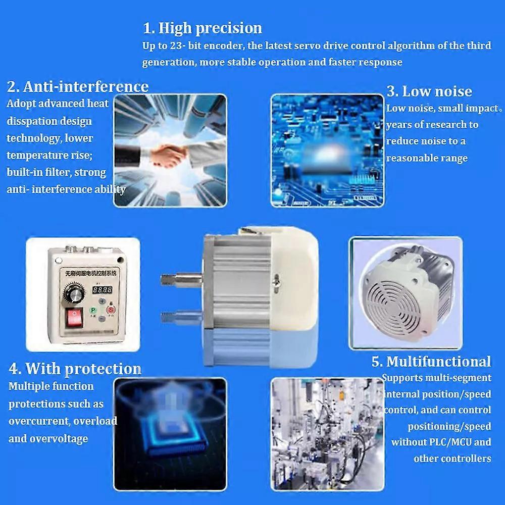 1200W Brushless Servo Motor & Controller Driver for Grinders | Face Mount Product Description: Upgrade your machinery with this high-performance 1200W brushless servo motor and controller driver. Designed for a range of applications including grinders, small lathes, woodworking machines, CNC precision carving, and sewing equipment, this motor offers smooth, efficient, and versatile operation. Key Features: Quiet Operation: Low vibration and mute performance for a more comfortable working environment. Adjustable Rotation: Forward and reverse rotation with multi-stage speed control for precise operation. Durable Construction: Made with pure copper motor components for enhanced reliability and longevity. Versatile Use: Suitable for various applications such as DIY production, woodworking, and CNC carving. Specifications: Voltage: 220V Power/Speeds: 1200W, 5000 RPM/Min Plug Type: EU plug Package Includes: 1 x Servo Motor & Controller Driver (grinder not included) Notes: Measurement Variance: Please allow a 1-3 cm (0.4-1.18") difference due to manual measurement. Color Difference: The actual color of the item may vary slightly from the pictures due to lighting and screen settings. Customer Support: If you have any questions or concerns, please feel free to contact us for assistance.