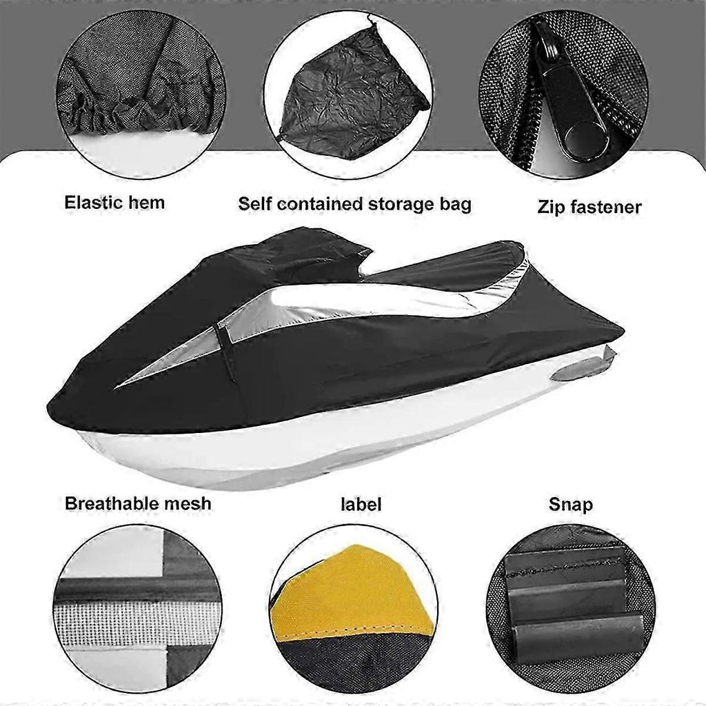 Jet-ski cover is suitable for , Rental, , SE, Limited (2011-2019). Replaces Part# 295100722, 280000598. It fits like a glove! Please check the year/make/model refer to "Watercraft Cover" description carefully to make sure it's fits. Duty trailering cover protects your Jet Ski during storage and transport. Keeps Watercraftm safe from such as glare, rain, sand and wind, and protects the paintwork from being clean and intact. And keep it in the best condition at all times. Newly upgraded Waterproof Boat Cover, providing a portable storage function, when not using the cover, can be quickly stored, easy to carry. Made of heavy-duty, glare-resistant solution-dyed polyester canvas, soft lining prevents jet ski wear and tear, 100% waterproof, tightly stitched and double-reinforced in areas prone to wear and tear for extra durability and sturdiness. The yellow place is the insertion point of the jet ski handle, and the hooks on the side can fix the cover, including the elastic rope and integrated buckle, which will fix the cover firmly on without worrying that it will be blown away by strong wind. Colour:black+silver Material:ABS Package Contents: 1 x Trailerable Cover Only the above package content, other products are not included. Note: Light reflection and different displays may cause the color of the item in the picture a little different from the real thing. The measurement allowed error is +/- 1-3cm.