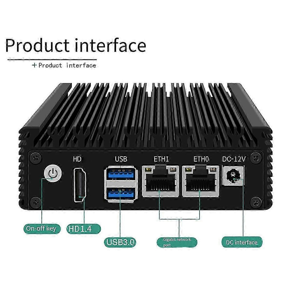Has dual network ports onboard RTL8111H full Gigabit network card chip Supports a single so-ddr3 8GB memory, supports 1 mSATA+ (SATA3.0 additional power supply) Support dual USB3.0 interfaces and HDMI1.4 high-definition display Supports virtualization technology and supports programmable four-input four-output GPIO interface An onboard 4-pin CPU fan with temperature control powers the all-aluminum chassis, providing fanless passive cooling, dustproof, and zero noise Interface:SATA Intergrated Feature:10/100/1000Mbps Model Number:3160 Demo Board Type: X86 USB:2*USB 3.0 :1.4 GIPO:10 PIN GIPO LAN:2*LAN Port DC IN:12V Plug Type:EU Plug,it applies to Indonesia, Germany, France, Spain, Italy and so on Voltage: AC100-240V Material: aluminum colour: Black Package Contents: 1 * Mini PC 1 * Fan Temperature Control 1 * Power Supply 1 * Hard Disk Cable 1 Pack of Hard Drive Screws Only the above package content, other products are not included. Note: Light reflection and different displays may cause the color of the item in the picture a little different from the real thing. The measurement allowed error is +/- 1-3cm.