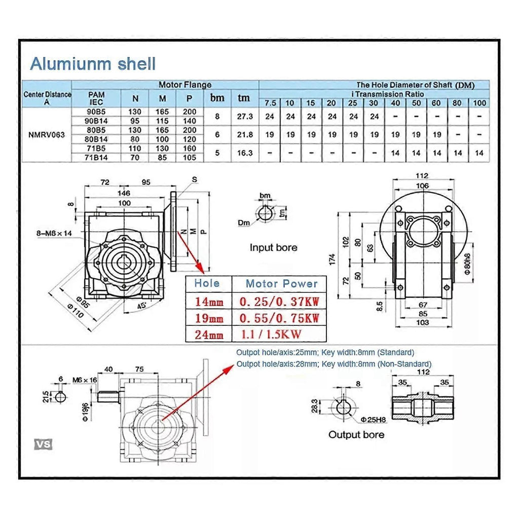 RV063 Worm Gearboxes NMRV063 Speed Reducer Ratio 7.5 10 15 20 30 40 50 60:1 js