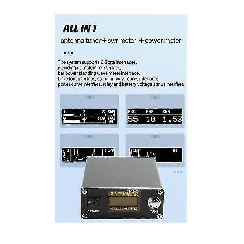 Universal 1.8MHz-30MHz ATU-100 ATU-100M 100W QRP Antenna Auto Tuner+SWR Meter 2 in 1 for HF Radio USDX G1M FT-818 817 JN
