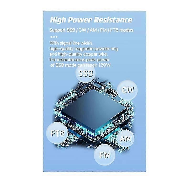 Frequency range: 1.8-30mhz Starting turn power: more than 1W Power range: 1-18m or SSB / CW, 0.1w-100w 18-30mhz or FM / AM / FT8, 0.1-50w External dimension: 139 x 74 x 29mm Product weight: 370g Battery capacity: 3300mah Charging power: USB type-C 5V 1A Charging time: about 4 hours Standby time: About 150-200 hours (no tuning action) Tuning duration: About 10-25 hours (start 1-3 relays) Colour:black Material:Metal + Plastic Package Contents: 1 x Antenna Auto Tuner Only the above package content, other products are not included. Note: Light reflection and different displays may cause the color of the item in the picture a little different from the real thing. The measurement allowed error is +/- 1-3cm.