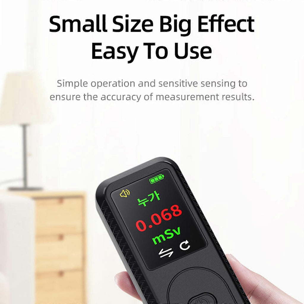 Specifications: Detection and counting: 90mm Geiger counter Measuring range: 0.08uSv/h~999uSv/h Charging mode: USB-type-c Product size: 100*40*25mm Screen size: 0.96 inch TFT color screen Packing list: Nuclear radiation detector * 1 Data cable * 1