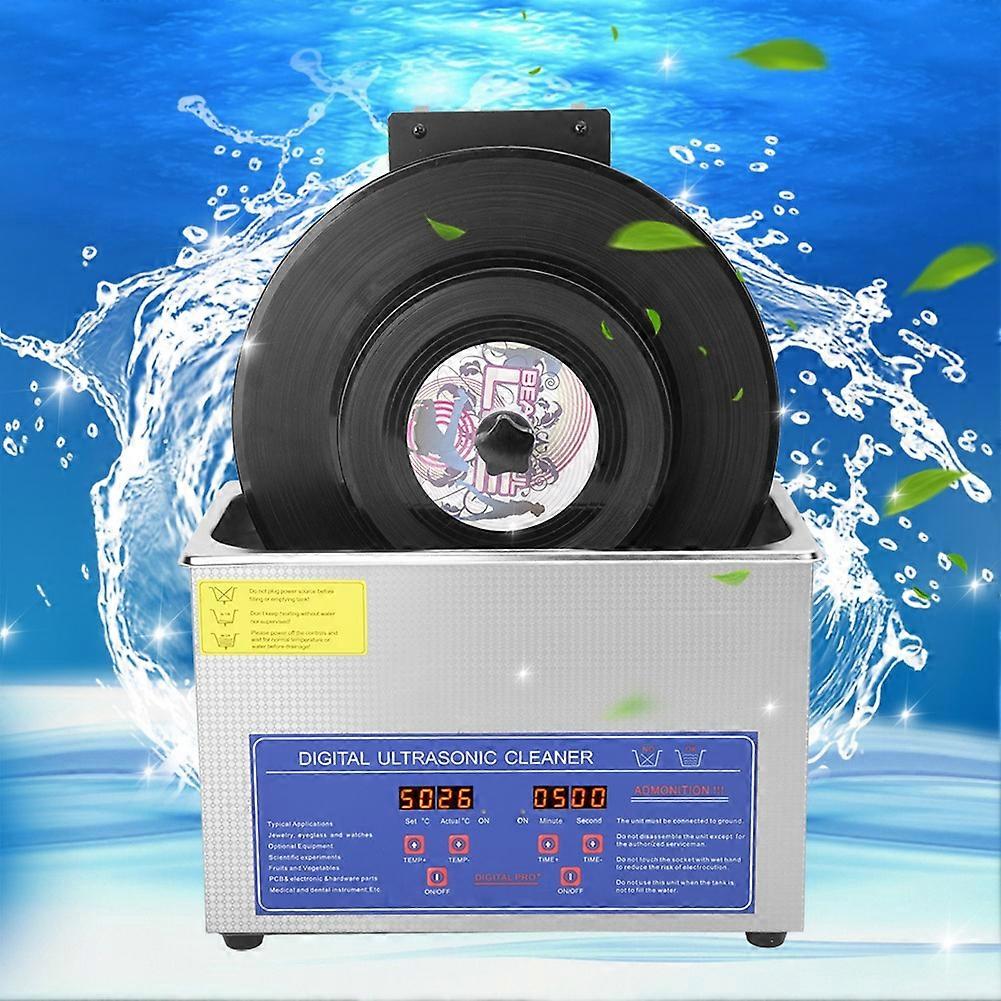 Feature: 1. The cleaner can clean 1-6 sheets at a time, saving time 2. The ultrasonic dishwashing machine body is stable and not inclined, and the cleaning effect is good. 3. The cleaning rack can be lifted and lowered, not only for the convenience of the record, but also after the record is cleaned, it is not necessary to remove the record to dry. 4. After the machine is stopped, the record will be raised. About 10 minutes, all the records will dry naturally, and the bag can be removed, which is convenient and easy. 5. After turning on, the shaft will rotate at a low speed, which can evenly clean the entire track of the record. Specification: Item Type: Ultrasonic CleanerUltrasonic Cleaning Machine: Material: SUS304 Stainless Steel Inner Tank: Approx. 300 x 150 x 100mm / 11.8 x 5.9 x 3.9in Size: Approx. 330 x 180 x 210mm / 13 x 7.1 x 8.3in Heating Power: 200W Ultrasonic Power: 180W Frequency: 40khz Setting Time: 1-30 Minutes Temperature Setting: 0-80?? Adapter: AC110V Record Cleaner: Body Material: Steel Clamp Section Material: Resin Built-In Motor: Imported Motor Lifting Stroke: 14cm Weight: Approx. 2800g / 98.8oz Adapter: AC100-240V. Package List: 1 X Ultrasonic Cleaner1 X Washer Cover1 X Washing Machine Basket1 X Washing Machine User Manual1 X Washing Machine Power Cable1 X Cleaning Base Clamp1 X Cleaning Rotating Table3 X Cleaning Table Screws10 X Wash Table Gasket1 X Wash Table Adapter1 X Cleaning Table Drying Rack Set