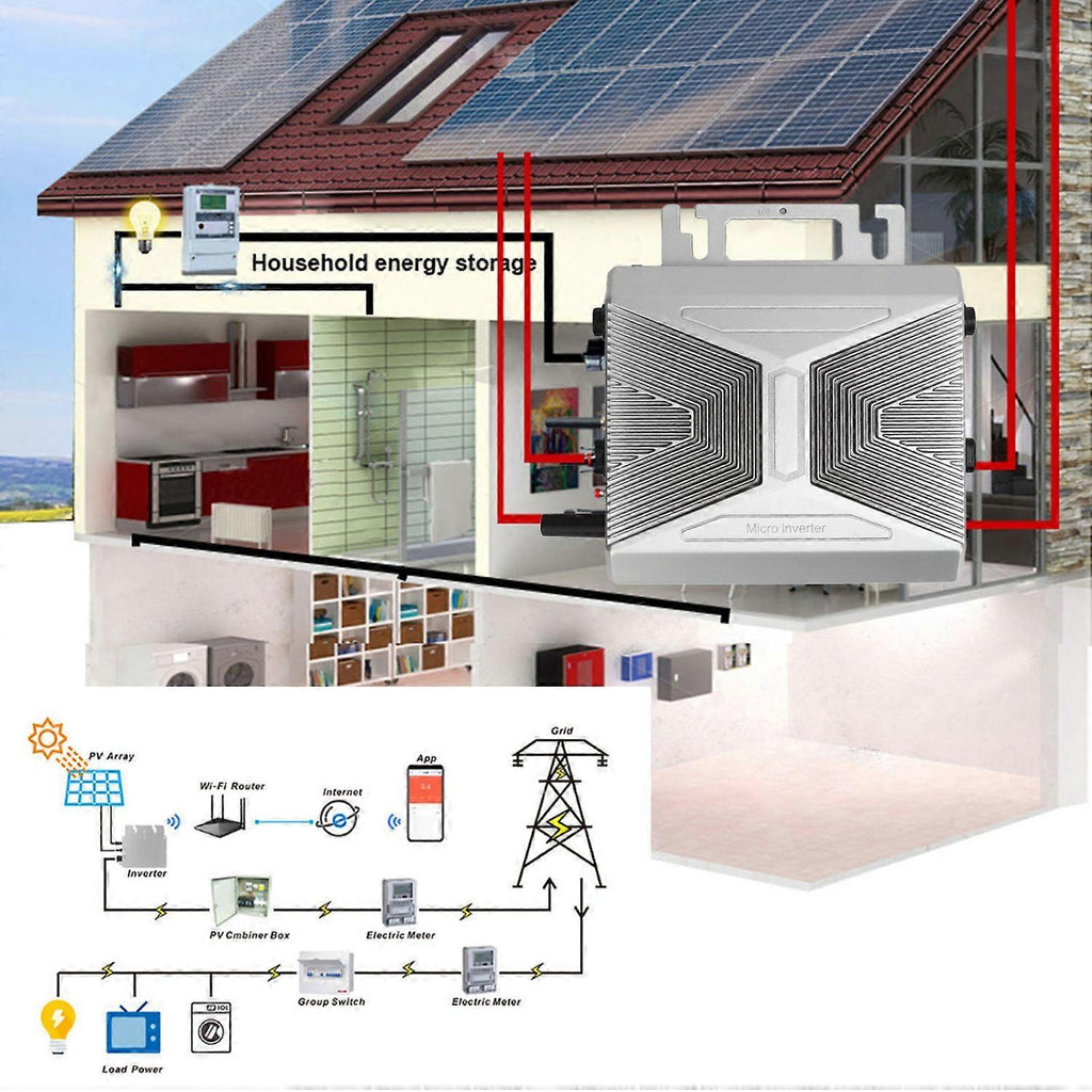 Feature: 1. INDEPENDENT CONTROL: Micro inverter can independently control various components in parallel, minimizing safety hazards. 2. PRECISE METER: The micro inverter is equipped with high precise meter, you can see the working status of various components. 3. MPPT FUNCTION: Grid tie inverter can achieve maximum power point tracking, maximizing the overall output power. 4. WIFI COMMUNICATION: Micro inverter can be operated and monitored through WiFi or phone APP, greatly improving overall efficiency and enabling remote upgrade and fault diagnosis. 5. SIMPLE INSTALLATION: The micro inverter can be installed directly behind the module or on a bracket, and is convenient for maintenance. Specification: Item Type: Solar Micro Inverter Material: Aluminum Alloy Model: SKY800M1 EU 230 Plug: EU Standard 230V Input Data (DC): Recommended Input Power (STC): 210-800W Maximum Input DC Voltage: 60V MP PT Voltage Range: 25-55V Work DC Voltage Range: 20-60V Maximum DC Short Circuit Current: 19.5Ax2 Maximum Input Current: 13Ax2 Output Data (AC): Rated Output Power: 800W Rated Output Current: 3.6 3.5A Nominal Voltage and Range: 220V 0.85Un-1.1Un, 230V 0.85Un-1.1Un Nominal Frequency: 50 60Hz Extended Frequency and Range: 50Hz 45Hz-55Hz, 60Hz 55Hz-65Hz Power Factor: 1 Maximum Units Per Branch: 6 Maximum Allowable Altitude: