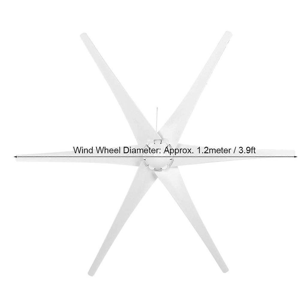 Feature: 1. High temperature resistant materials to make sure power generation rate. 2. High wind energy utilization and effective current and voltage regulation. 3. The three-phase AC permanent magnet synchronous generator has durable parts, stable operation, low noise and long service life. 4. Use new wind energy to generate electricity, environmental protection and energy saving. 5. Widely used for charging boats, terraces, cabins or mobile homes, etc. Specification: Item Type: Wind Turbines Kit Color: White Material: Alloy + Plastic Rated Wind Speed: 12m/s Number of Blades: 6 Wind Wheel Diameter: Approx. 1.2meter / 3.9ft Power: 200W Optional Voltage: 12V/24V/48V . Package List: 6 x Blade1 x Washer1 x Fastening Tool Kit1 x Motor 1 x Controller1 x Leaf Cover