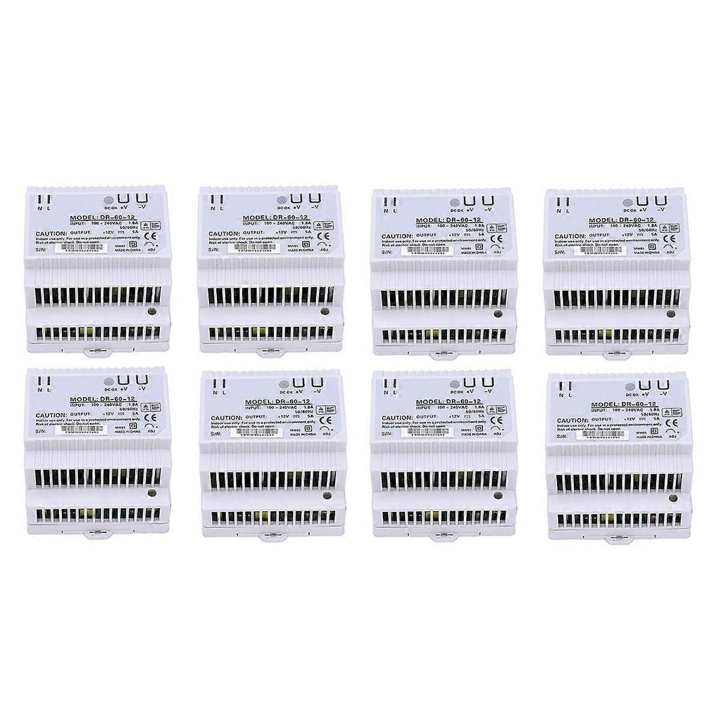 Output Power: 51 - 100W; Output Type: Single; Output Frequency: 50hz; Output Current: 0-5A Model: -60-12 note: 1. All parameters NOT specially mentioned are measured at 230VAC input, rated load and 25 Celsius of ambient temperature. 2. Ripple & noise are measured at 20MHz of bandwidth by using a 12 inch twisted pair-wire terminated with a 0.1uf & 47uf parallel capacitor. 3. Tolerance: includes set up tolerance, line regulation and load regulation. protection Over load Rated output power105%~150% start over load protection protection type: mode,auto-recovery after fault condition is removed over voltage 15.6~17.8V protection type: cut off output voltage,diode clamp environment Working temp,humidity -20 Celsius~+60 Celsius,20%~90%RH Storage Temp,humidity -40 Celsius~+85 Celsius,10%~95%RH non-condensing Withstand vibration 10~500HZ,2G 10min/1cycle,period for 60 minutes,each axes safety Withstand voltage I/P-O/P: 3KVAC I/P-FG: 1.5KVAC O/P-FG: 0.5KVAC Isolated resistance I/P-O/P,I/P-FG,O/P-FG: 100M ohms/500VDC Fit Standard Safety standard Fit UL1012 EMC standard comply with EN55022,CLASSA colour: white Material: ABS+ electronic components size: 9.3 x 7.8 x 5.6cm Package Contents: 8 x Rail type power switch Only the above package content, other products are not included. Note: Light reflection and different displays may cause the color of the item in the picture a little different from the real thing. The measurement allowed error is +/- 1-3cm.