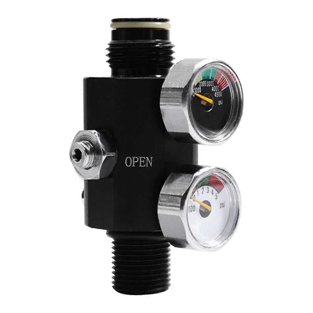 4500psi Pressure Guage(shows output 0 - 3000psi) 5000psi Pressure Gaugeshows cylinder pressure Uses: fire breathing apparatus air bottle, scuba breathing apparatus air bottle, constant pressure valve, high pressure pump, can also be equipped in fire, medical-rescue, rescue and other vehicles, in the fire, coal mine and chemical accidents and other disaster accident scene. Note:The dust cover has no actual function and the color is random,and cannot be specified. Output thread:G1/2-14 Input thread:M18x1.5 Colour:Black Material:Metal Package Contents: 2 * Pressure Regulator Only the above package content, other products are not included. Note: Light reflection and different displays may cause the color of the item in the picture a little different from the real thing. The measurement allowed error is +/- 1-3cm.