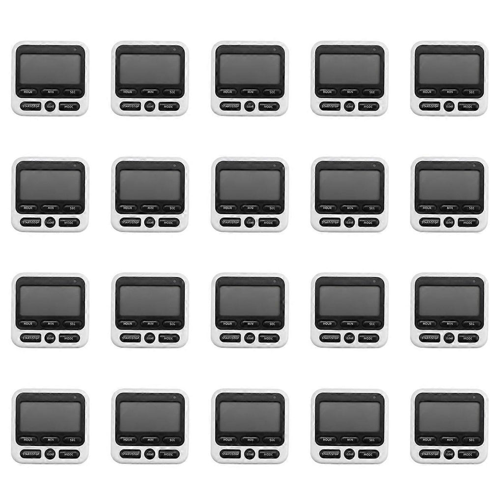 timer, alarm clock and clock, as a timer for cooking, bathing, sports, homework, debate or games. Also, as an (alarm clock), suitable for office, bedroom, study, living room. HOUR button to set the hour. the MIN button to set the minutes. the START / STOP button to start / stop. the MODE button to change the timer or clock. the Clear button to reset the cooking timer, you can just the mode button to change the mode, easy to use. Meet your different needs. The large lcd display, large and clear numbers user-friendly for people with blurry vision or the elderly. The countdown and countdown timer functions meet different occasions. The Liquid Crystal Display and Loud Audible Alert: To show the stopwatch digits more clearly, the minutes and seconds both be shown with large digits. Easy to read. Buzzer mode with 70-90dB beep sound lets you hear the alarm in another room, no worry about overcooking.It is very safe to use our kitchen timer. Time setting: the MODE button to enter clock mode. the SEC button to set the second. the MIN button to set the minutes. the HOUR button to set the hour. Countdown Function: the MODE button to enter timer mode. the CLEAR button to return to zero. the SEC / MIN / HOUR button to set the hour. the START / STOP button to start the countdown. the START / STOP button again to stop the timer. the CLEAR button to return to zero. Counting function: the MODE button to enter timer mode. the START / STOP button to start the timer. the START / STOP button again to stop the timer. the CLEAR button to return to zero. Note: 1 AA battery is required, not included colour: Black Material: ABS size: 80 x 80 x 22mm Package Contents: 20 x timer Only the above package content, other products are not included. Note: Light reflection and different displays may cause the color of the item in the picture a little different from the real thing. The measurement allowed error is +/- 1-3cm.