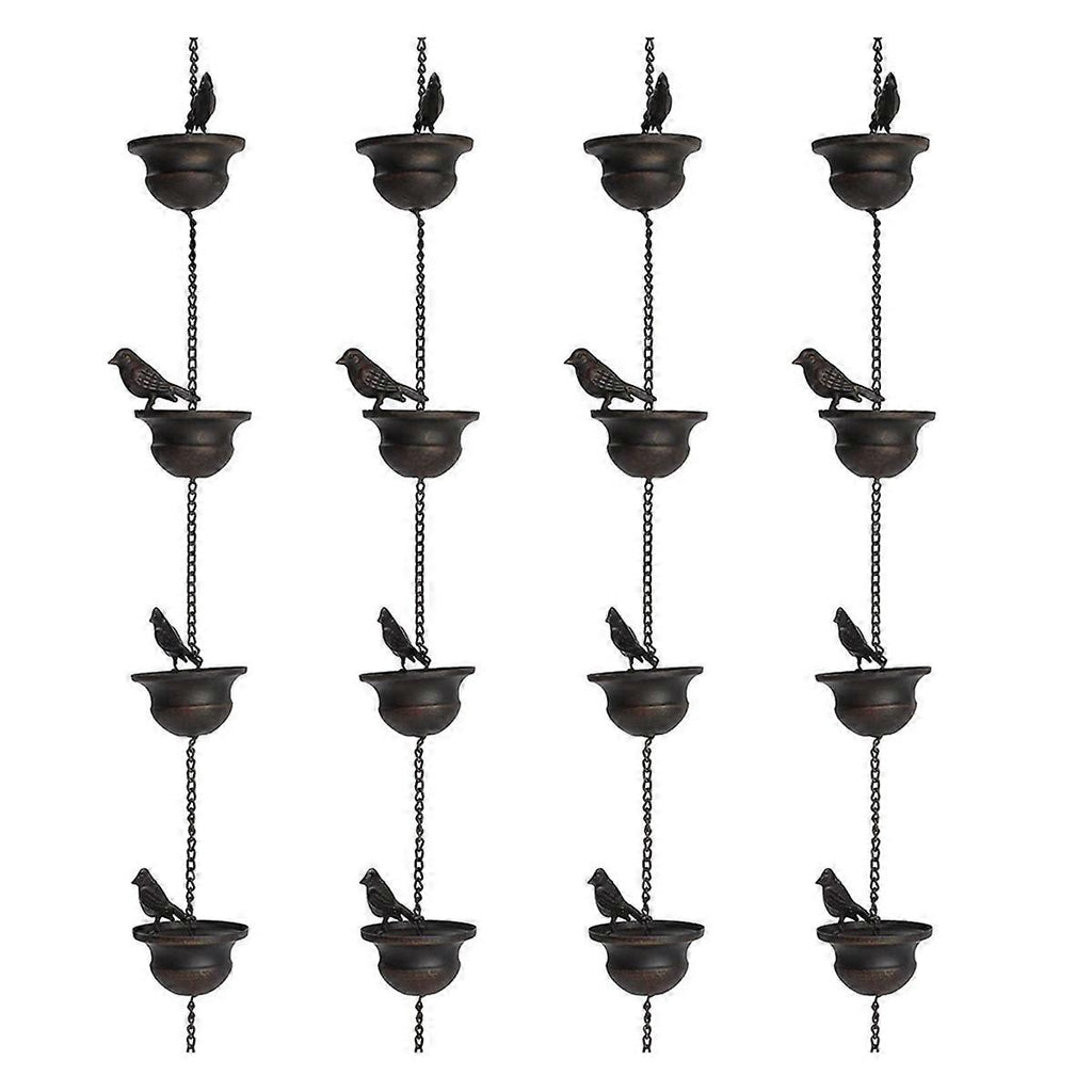 TURN A RAIN STORM INTO A SERENE ENVIRONMENT - If you're looking for a way to upgrade your home d??cor, then this lovely rain chime is the choice. Rainwater run-off cascade down these Bird iron cups creating a beautiful, almost hypnotic, effect. CRAFTSMANSHIP THAT 'T RUST EASILY - We didn't cut any corners when designing this rain chain basin. The buckets are from galvanized iron that can withstand the strongest storms and heaviest downpours without wearing down or rusting easily. EASILY ADJUST THE LENGTH BY ADDING ON MORE - Each order includes one chain that measures 35 inches long and comes with five Bird buckets attached. If you need a longer downspout diverter, you can purchase multiple rain chains and quickly connect them. DOUBLES AS A TRANQUILIZING WIND CHIME - When the rain clears, the fun does not stop! The rain catcher softly blows in the wind creating the most relaxing melody. It's for people that love to sit on their porch on a beautiful day. Colour:As Shown Material:iron Package Contents: 4 x Iron Bird Decorative Rain Chain Only the above package content, other products are not included. Note: Light reflection and different displays may cause the color of the item in the picture a little different from the real thing. The measurement allowed error is +/- 1-3cm.