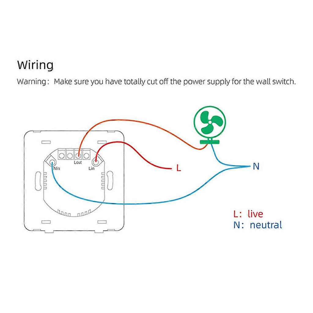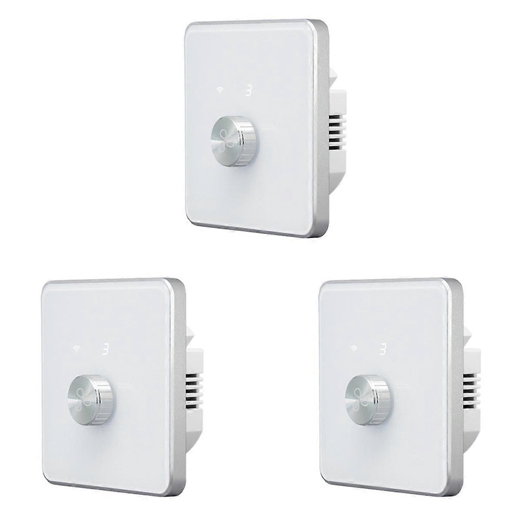 [Capabilities Requirement] The smart ceiling fan switch does not compatible with fans having a built-in remote control system. The maximum load is 2A (provide 5 fan speed). Only uses under 2.4GHz WiFi (not 5GHz). Only used as a single-pole ceiling fan wall switch (NOT 3-way). The neutral wire is required. [Hands-free Voice Control] Smart ceiling fans works ly with and Home. [Remote Control & Schedule] You can turn on the ceiling fan through APP. Create timer or countdown schedules to set your smart ceiling fan control to automatically turn on and off at specific times. [Power-on State Setting] You can change freely the power-on status via APP: "Power-on State" ON: Automatically turn on the fan after power failure recovery, and the default 3-speed wind speed. "Power-on State" OFF: Needs to be restarted manually after power failure recovery. App Control: On /Off / Speed Control/Timer Scheduled / Timer / Shares Works with Works with Home Notice: 1. The smart fan switch is not compatible with fans with built-in remote control system. 2, The maximum load is 2A (provide 5 speed levels). 3, Only use wireless network below 2.4GHz (not 5GHz). 4. There must be a neutral line. Specification: Model Number: Smart Wif Fan Switch Mechanical Life: ??10000 Product Name: Smart Rotary Ceiling Fan Switch Max. Power: 250W Size: EU 86x86x45mm Working temperature: -10~45?? Wireless standard: IEEE 802.11 b/g,WiFi 2.4G Wire type: Live + Neutral App name: Tuya Color: White Material: Plastic Package Contents: 3 x Smart Wifi Fan Switch Only the above package content, other products are not included. Note: Light reflection and different displays may cause the color of the item in the picture a little different from the real thing. The measurement allowed error is +/- 1-3cm.