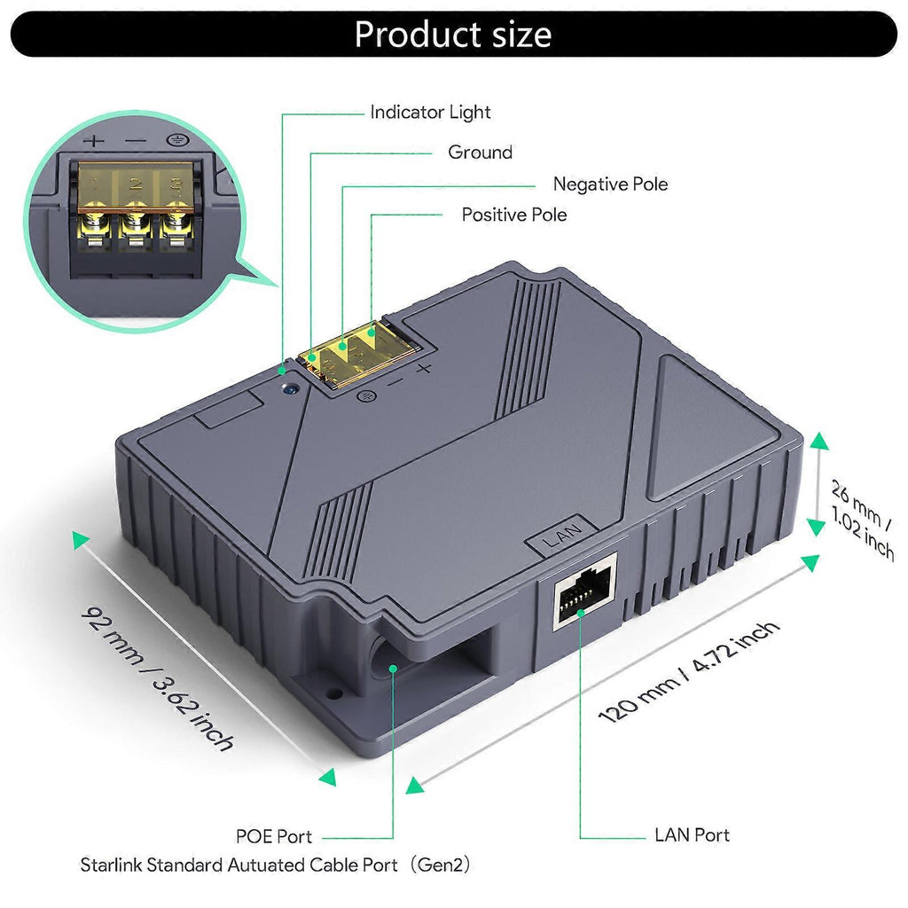 Features: The 3-in-1 PoE Injector 150W combines the functions of a PoE injector, Step Up Converters, and a power supply into one device. 12V conversion kit efficiently delivers 150w power to reliably support Internet Satellite Dish. Connection 3 in 1 Poe Injector 12V offer power input ranges of 9-36V/150W delivers Gigabit Networking speed for fast data transmission. Protective 150W 12V Poe Offers superior Protective, efficient storage capabilities ensure reliability. Featuring a plug-and-play design and a single output, this ethernet adapter kit allows for straightforward connection to a Gigabit routers or PC, maintaining Networking speed Specifications: Component:ABS Size:Approx.120x92mm/4.72x3.62inch Package Includes: 1Pc PoE Injectors note: 1.Please allow 1-2cm errors due to manual measurement, making sure that you not mind before order. 2.Due to the differences between different monitors, the picture may not reflect the actual of the item.
