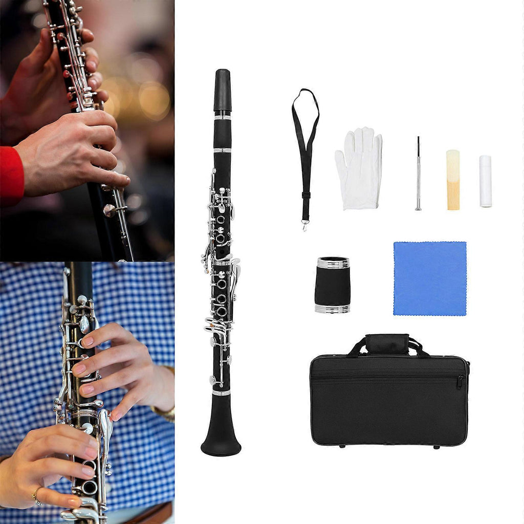 17 Keys Bb Flat Clarinet Bakelite Clarinet with Plating Button Set with Clarinet Case, Music Instruments for Beginners
