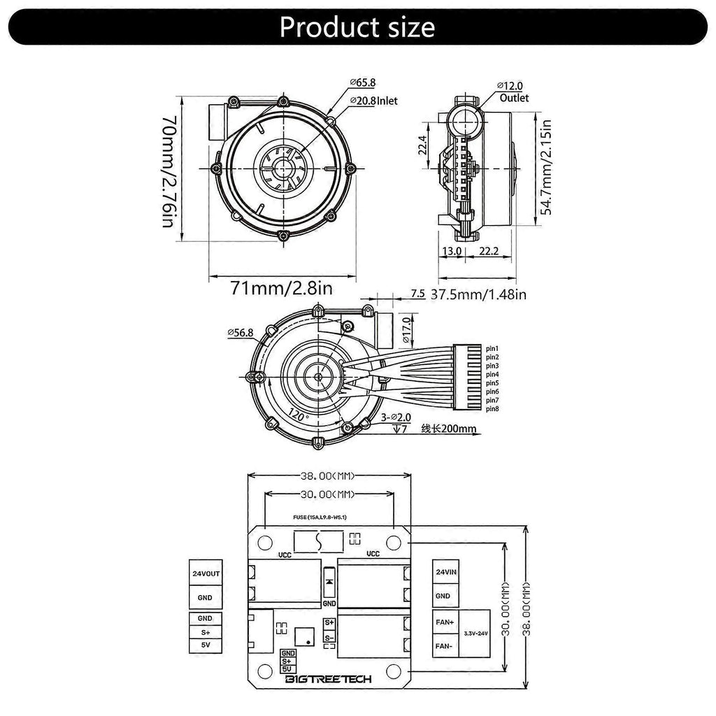 Features: Experience powerful cooling with the 24V Brushless Centrifugal Air Blower,to deliver a strong airflows for rapid temperature reduction during 3D printing, ensuring optimaled print. Featuring a brushless motor and advanced designing, this blower operates quietly while enhancing air flows efficiency, for precise cooling in various applications. Perfect for 3D printing enthusiasts and professional manufacturers to improve print quality with efficient cooling solution, as well as educational institutions aiming to enhances practical learning experiences. For fast speed, large scale printing tasks, and experimental setups requiring efficient cooling to maintain properties and prevent deformation. From durability metal and plastic, this blower set is easy installation with standard interfaces, offering flexibility and adaptability across multiple 3D printer models like for VzBoT and HevORT. Specifications: Item:Air Blower Fan Kit Type?? 24V Brushless Centrifugal Cooling Fan Motor: Brushless Motor For VzBoT and HevORT 3D Printers Fan Size:about 70x71mm/2.76x2.8in Package Includes: 1pc Ws7040-24-V200 Fan 1pc Control Adapter 1pc Brushless Driver 1pc Air Filter 1pc Potentiometer Knob 1pc Brushless Drive Power Cord 1pc Brushless Drive Signal Line 1pc 20awg Power Cord 1pc 100cm Control Signal Line 1set Installation Screw Kit note: Please allow 1-2cm errors due to manual measurement. Please allow for slight color differences due to different display resolution