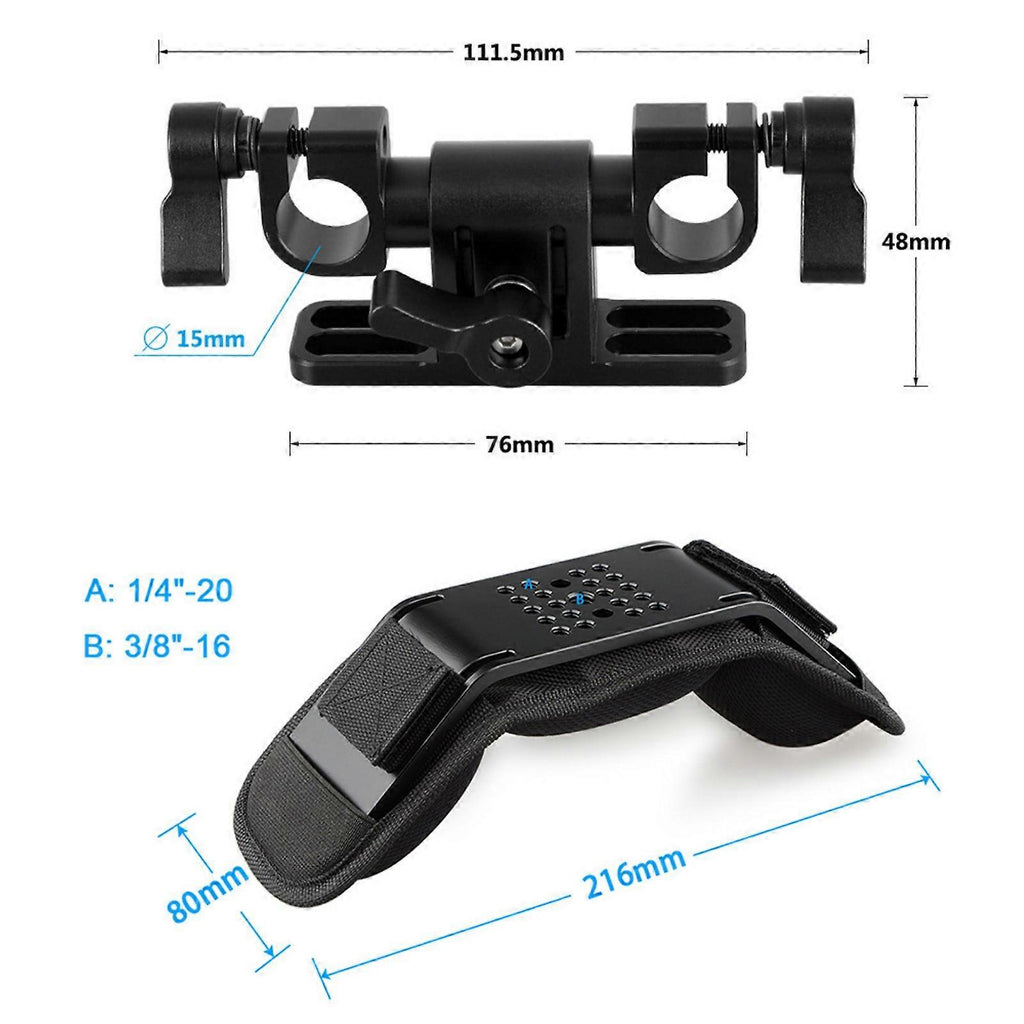 Features: Experience unparalleled stability and comfort with our adjustable shoulder mount rig, alleviate pressure during extended shoots. Crafted from aluminum, this rig features ergonomic design with a 360 degree rotating 15mm rod clamp and a Z shaped adapter for accessory attachment. Ideal for filmmakers and videographers enhances support and balance while capturing dynamic shoots. Perfect for long shoots, this shoulder mount allows for focusing adjustments or other tasks, The integrated 15mm diameter clamp on the shoulder pad offers effortless customization, making it easy to attach additional accessories like power supplies, flashlights, or lens supports. Specifications: Component:Aluminum Size:Approx.216x80mm/8.5x3.15inch Package Includes: 1 Set Shoulder Pad note: 1.Please allow 1-2cm errors due to manual measurement, making sure that you not mind before order. 2.Due to the differences between different monitors, the picture may not reflect the actual of the item.
