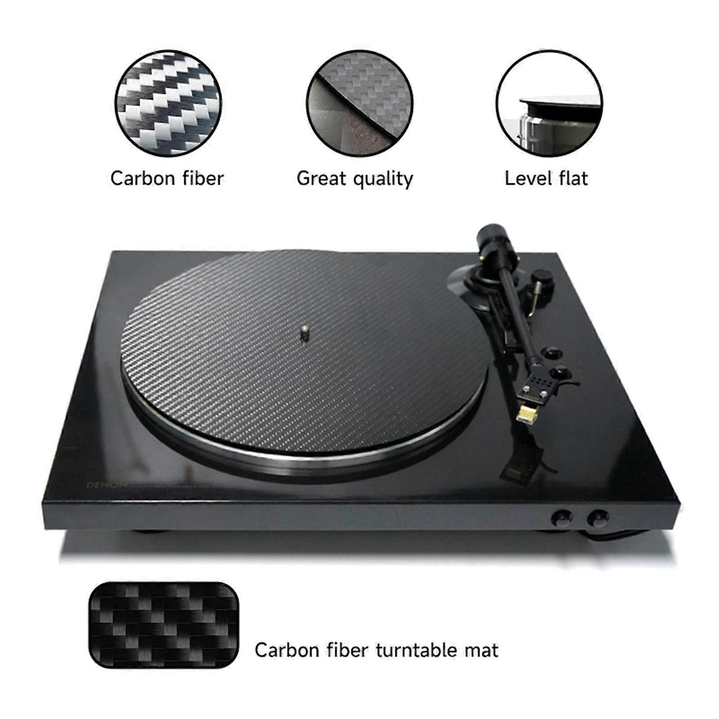 Features: Experience unparalleled sound quality with our extremely upscale carbon fiber Record slipmats, significantly reduce turntable vibrations and enhances every note vibrancy. Crafted from carbon fiber, this slipmat features exceptional durability and a lightweight design that ensures easy installation without adding extra weight to your turntable. Ideal for enthusiasts, professional, and recording engineers who demand superior protective for their collections. Perfect for use in home systems, music studios, or during live performances, ensuring stable sound quality and immersive listen experience. The carbon fiber texture not only enhances the aesthetic appeal of any turntable setups but also serves as accessory for those elevates their auditory experience. > Specifications: Component:Carbon Fibre Size:Approx.30cm/11.81inch Package Includes: 1Pc Turntable Platters Mat note: 1.Please allow 1-2cm errors due to manual measurement, making sure that you not mind before order. 2.Due to the differences between different monitors, the picture may not reflect the actual of the item.