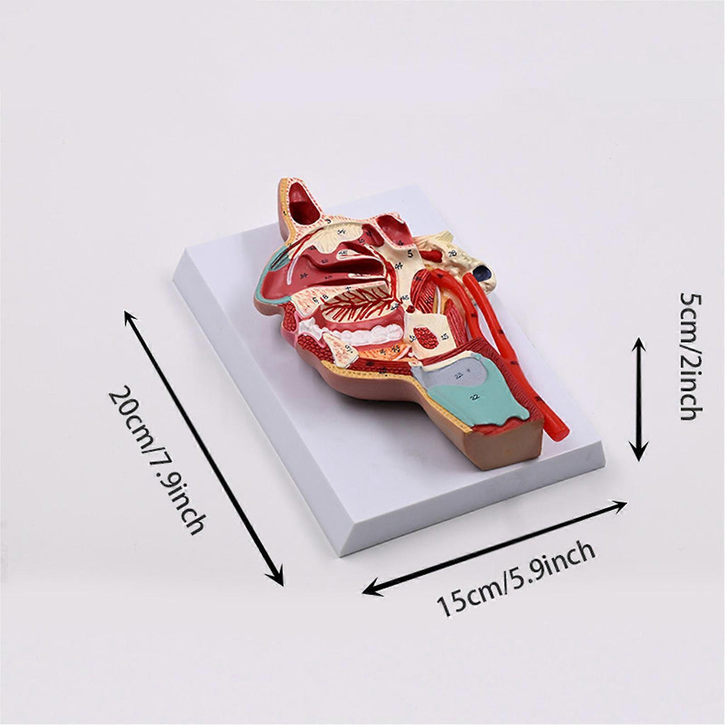 Features: Human nasal cavity model is a great learning tool for students or anyone who is interest in nasal cavity of body. Human anatomical nasal cavity throat model is great for lab, medicals teaching, hospitals. You can clearly see the main anatomical structures of the anatomical nasal cavity throat. Size: about 20x15x5cm/7.87x5.91x1.97in, will not take up too much space. Medicals model is a present for the students and teacher. Great for schools, hospitals, visual aids in physical health teaching. Specifications: Component: PVC Size: about 20x15x5cm/7.87x5.91x1.97'' Package Includes: 1 Pc Nasal Cavity Model note: Please allow 1-3cm errors due to manual measurement. Due to the difference betweeen different monitors,the picture may not reflect the actual color of the item.