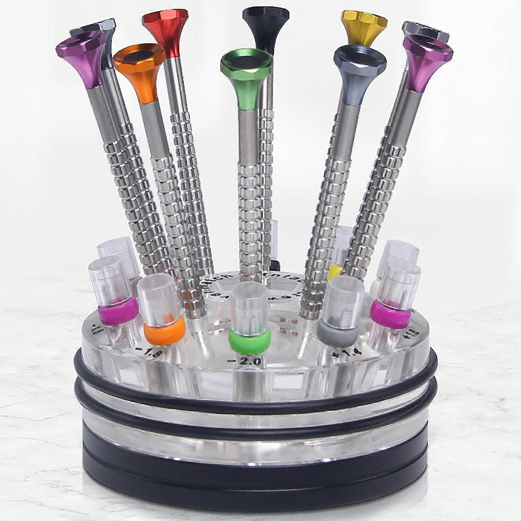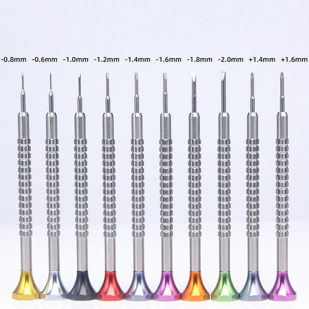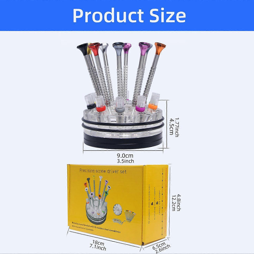 Features: Experience the versatility of our Screwdriver Set, featuring both flathead head driver, crafted to meet all your screwing needs with precise and ease. Craft from quality steel, this manual screwdriver kit is for durability and reliability, ensuring your work is efficient and your tool last long Suitable for mechanics, electronics repair technicians, woodworking enthusiasts, and DIY aficionados who demand top tool for their crafting and fixing projects. Whether you're assembling furniture home, repairing electronic devices, or working on DIY crafts, this portable screwdriver set is perfect for wide ranges of applications. The ergonomic, nonslip handle provide a comfortable grip, enhancing stability and safety during use, making it essential addition to any workshop, garage, or household toolkit. Specifications: Component:Stainless Steel Base Size:Approx.9x4.50cm/3.5x1.77inch 10pcs Screwdrivers:-0.8mm,-0.6mm,-1.0mm,-1.2mm,-1.4mm,-1.6mm,-1.8mm,-2.0mm,+1.4mm,+1.6mm, Package Includes: 10pcs Precise Screwdriver 2pcs Bit 1pc Base note: Please allow 1mm errors due to manual measurement. Due to the differences between different monitors, the picture may not reflect the actual item color.