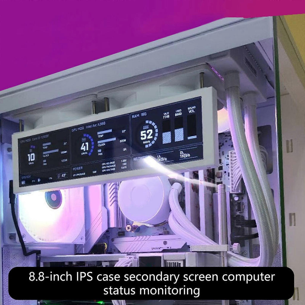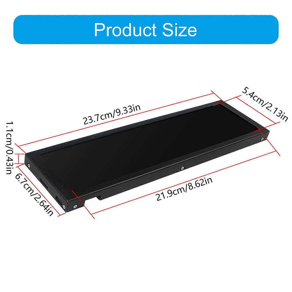 Features: The 8.8Inch portable monitor features 480x1920 IPS LCD display with 600 nits brightness and support for realtime system monitoring. With durability aluminum casing, this secondary screen offers 170?? wide viewing and eye care technology. Ideal for PC enthusiasts, gamers, and professionals enhances workflows efficiency through customizable data displays and multiple devices compatibility. Perfectly integrates into gaming setups, home offices,work place extends display for multitasking productivity. Choose between black or clean white finishes to your setups, combining aluminum construction with USB connection for instantly setups. Specifications: Name??8.8in Ips Chassis Sub-Screen Display window: about 21.9cmx5.4cm/ 8.62x2.13in Overall size: about 23.7cmx6.7cm/9.33x2.64in Thickness: about 1.1cm/0.43in Color: Black/White Connection: USB Type C Resolution: 1920x480 Power: to 1.6W Inner Memory: 66MB Shell: Aluminum Package Includes: 1PC 8.8in Ips Chassis Sub-Screen note: Please allow 1-2cm errors due to manual measurement. Please allow for slight color differences due to different display resolution.