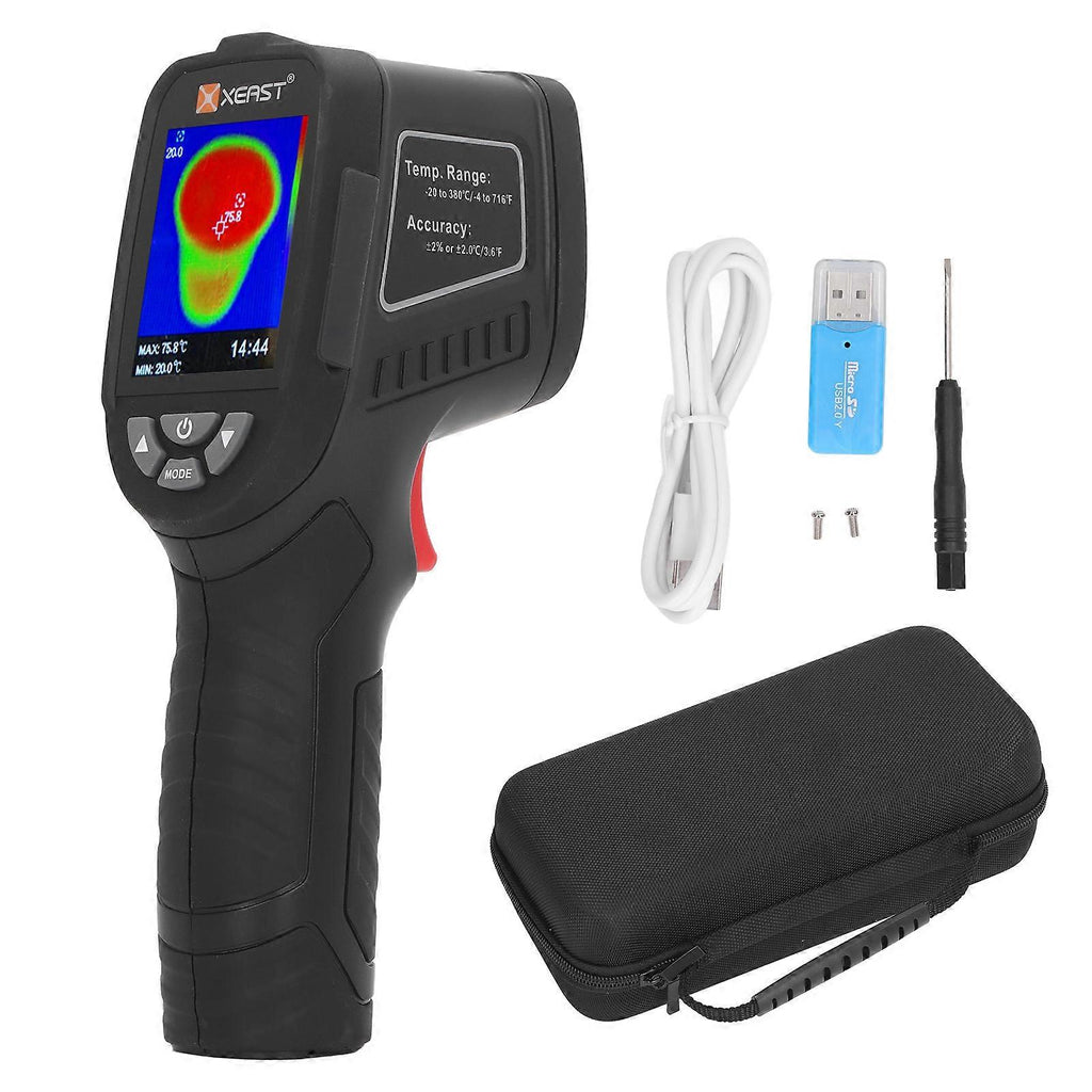 Feature:1. [32x32 High Resolution and 0.3MP] This thermal imaging camera is with 32x32 thermal image pixel high resolution, 0.3MP visible pixels, 2.4in color display. And the measuring rang is 20 to 380 or 4716F.2. [Center Point Measuring Cursor] Infrared thermal imager can make clearly visible image, center point measuring cursor for quick and accurate position to measure the temperature of self labeled objects.3. [Language Support] Thermal imager can do multiple language support in English, Chinese, Italian and German.4. [USB Connecting and Store] Thermal and visible images of this imager are stored in the device and can be read via USB or stored in a computer and with automatic tracking alarm function.5. [Wide Application] Infrared thermal imager can be widely used for predictive maintenance, such as high voltage substation equipment, electrical cabinet inspection, HVAC equipment.Specification:Item Type: Thermal ImagerMaterial: ABSInfrared Resolution: 32x32 (1024Pixels)Temperature Measurement Range: -20-380 Or -4-716FTemperature Measurement Accuracy: 2% Or 2 ( 4F)Display: 2.4in Color Screen (1024Pixels)Visible Light Image Resolution: 0.3MPField Of View Or Minimum Focusing Distance: 33x33Great Focusing Distance: 5mmThermal Sensitivity: 0.15CEmissivity: 0.1-1.0 AdjustingWavelength Range: 8-14umColor Palettes: Color, White Hot, Iron Red 1, Iron Red 2Image Frame Rate: 7HzFocusing Mode: FixedImage Storage: Standard 8GB Storage Card (Built In Storage Card)Image Storage Format: BmpPower Supply: 1.5V AA Batteries x 4 (Shipped Without Batteries) or USB PoweredBattery Life: 12 HoursAuto Shutdown Time: 3min, 5min, 10minOperating Temperature: -5-40 (23F-104F)Storage Temperature: -30-60 (-22F-140F).Package List:1 x Thermal Imaging Detector1 x U Disk(No Memory Card)2 x Screw1 x Screwdriver1 x Instruction Manual1 x USB Data Cable1 x Storage Bag