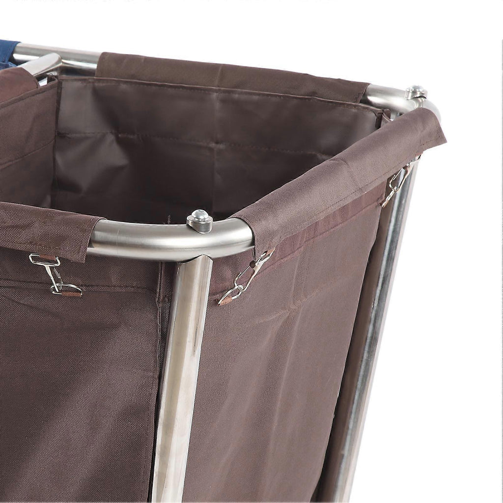 Feature:1. With 4 Wheels: The laundry cart is equipped with 4 silent wheels, including 2 directional wheels and 2 universal wheels, no dead angle movement, low rolling resistance.2. Stainless Steel: The cart bracket is made of excellent stainless steel, rust resistance and wear resistance, ensuring the stable and reliable structure of the cart.3. 2 Cloth Bags: The laundry cart is equipped with 2 detachable cloth bags with a total capacity of 350L, made of oxford cloth, easy to clean, waterproof and durable.4. Modular Structure: The rolling cart is a simple modular structure, easy to install and disassemble, with fine polishing and welding process, for higher load bearing capacity.5. Dry Wet Sorting: This laundry cart has a heavy duty structure with large capacity and detachable function, making it suitable for hotel, laundry room, dormitory, and home.6. Applicable Scenes: The 2 bag laundry cart is convenient to practical, suitable for separating dry and wet clothes, making it easy to classify and carry clothes.Specification:Item Type: Laundry CartProduct Material: Stainless Steel, Oxford Cloth BagMaximum Capacity: 2 Bags, Total 350LMaximum Bearing Capacity: 100KG/220LbsFeatures: Rustproof, wear resistant, long service life, waterproof, easy to clean.Package List:4 x Wheels1 x Upper Bracket1 x Lower Bracket4 x Straight Pipes2 x Cloth Bags1 Pack Screw