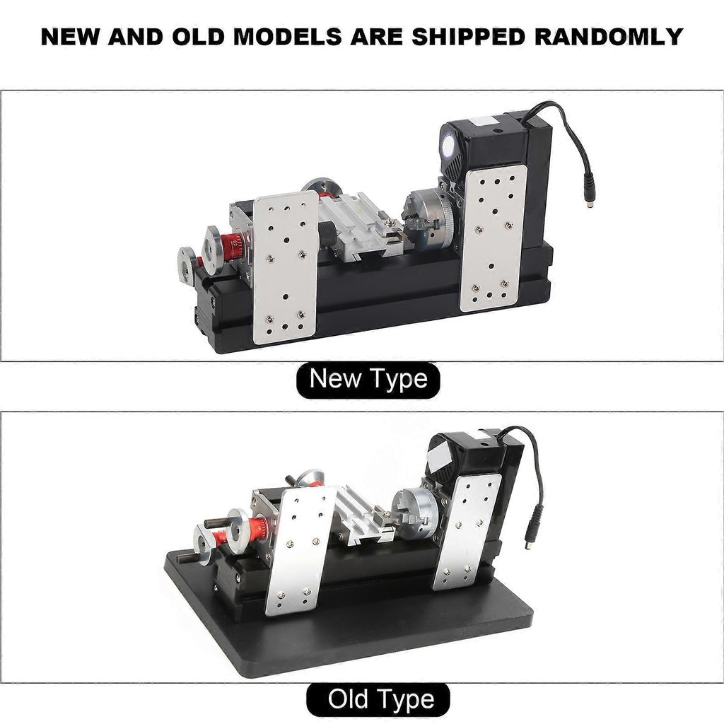Features:Motor case and headstock are jointed.Main parts: headstock, tailstock, long machine bed, big slider, small slider, motor blade, gear, connection block, belt cover etc. All of the parts are made of metal except belt cover.Center height is 25mm and distance between centers is 135mm. Motor speed normally drops to 2000rpm when using the lathe to machine metal.Lathe tool is made of high speed steel material, which can process soft metal, nonferrous metal and precious metal. By using central block, the diameter can be expanded to 100mm.With 0.02mm accuracy of scale lines, the hand wheel increases the precision of workpiece processing.Specification:Motor speed: 20,000rpmInput voltage/current/power:12VDC/2A/24WPlug voltage: 100-240VPlug type: US plugMaximum diameter of processed material: 20mmProcessed material length:135mmAxis Z slider travel: 30mm Axis X slider travel: 160mm Working material: lignin plastic, soft metal (gold, silver, copper, aluminum etc.), acrylic, plastic etcPackage list:1 * Mini Lathe1 * Power Cord1 * Power Adapter1 * Workbench Plate1 * Accessory Bag1 * Sponge PadNote:Please kindly make a note if you need any plug adapter. Please note that the new type and old type of this product will be sent randomly, and make sure you will not mind before ordering..