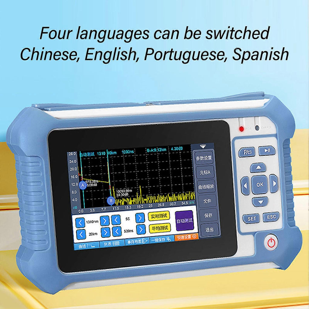Feature:1. [Multi Function] This optical fiber tester has 9 functions, including OTDR, event map, optical power meter, red light source, stable light source, optical loss test, LED light, RJ45 cable testing and finding.2. [Auto Test and Analysis] This fiber optic OTDR tester allows for one key testing and automatic data analysis, eliminating the need for complex manual operations.3. [Wide Application] Ideal for FTTx and access network construction and maintenance, this device accurately identifies fiber faults, measures cable length, and calculates relative optical power loss.4. [Wide Testing Range] The OTDR can measure a wide range of optical fiber networks, including long distance optical fiber networks and distributed optical fiber sensor networks.5. [4.3 Inch Touch Screen] Equipped with a 4.3 inch LCD touch screen, this OTDR offers clear display and intuitive operation, ensuring ease of use for technicians.Specification:Item Type: Optical Time Domain ReflectometerMaterial: ABSModel: AUA513AFeature: Can test with lightConnector Model: APCOptical Power Meter: -50 to +26dBmStable Light Source: 1310nmTest Range: 80kmFour Languages Can Be Switched: Chinese, English, Portuguese, SpanishSave Test Data: 100,000 sets (with 32GB memory card)Display: 4.3 inch 800x480P IPS capacitive LCD touch screenPower Supply: 7.4V 2200mah polymer lithium battery x 2 (built in)Rj45 Receiver Power Supply: 9V6F22 battery x 1 (not included)VFL Interface: 2.5mm universal SC FC STOTDR Stable Light Source Interface: Can be freely replaced with SC APC, FC APCOPM Optical Power Meter Interface: 2.5mm universal SC FC STLight Loss Test: FC SC interface range 0-30dBWith Line Finding Testing Function: Can test straight line T568B and cross line T568A.Package List:1 x Optical Time Domain Reflectometer1 x User Manual1 x USB Cable1 x RJ11 Crocodile Clip Cable1 x Power Cable1 x FC Adapter (Installed On The Machine)1 x SC Adapter1 x RJ45 Receiver1 x RJ45 Remote Adapter1 x Storage Bag1 x Strap1 Pack x Cleaning Cotton Swab1 x Headphone1 x RJ45 Test Cable1 x FC to LC Adapter
