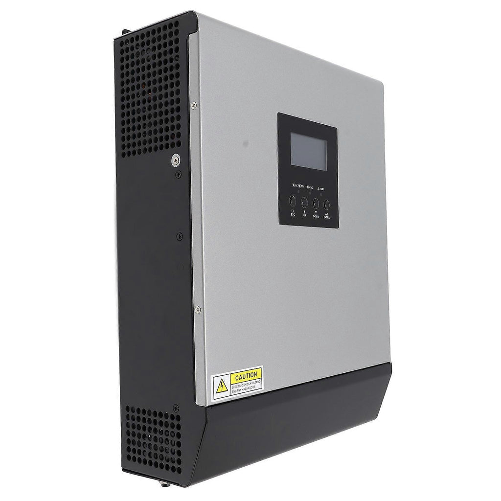 Feature:1. 4 in 1 Function: Works perfectly as an inverter with solar charging function, mains charging function and UPS function, very useful.2. Wide Compatibility: Compatible with mains voltage and generator, automatic restart after mains power recovery, higher in safety.3. Convenient Setting: The priority of commercial power and solar energy can be set through LCD screen, and the operation is simple.4. Better Charging: Built in smart battery charger design to optimize battery performance, which will largely facilitate the charging.5. PWM Controller: Built in PWM solar charging controller, input voltage range can be selected according to household appliances or computers.Specification:Item Type: Hybrid Solar InverterModel: PS3KVAMaterial: Cold rolled steel, PCB, copper. Protection Grade: IP21Surge Output Power: 6000VAWaveform: Pure Sine WaveFrequency Converter Mode:Rated Power: 3000VA, 2400WDC Input: 24V DC, 100AAC Output: 230VAC 50Hz 13A 1 AC Charger Mode:AC Input: 230V AC 50Hz 17.7A 1 DC Output: 27V DC 30A/20AAC Output: 230V AC 50Hz 13A 1 Solar Charger Mode:Rated Current: 50ASystem Voltage: 24VDCMaximum Solar Voltage VOC: 80VDC.Package List:1 xHybrid Solar Inverter1 x Connecting Cable1 x User Manual