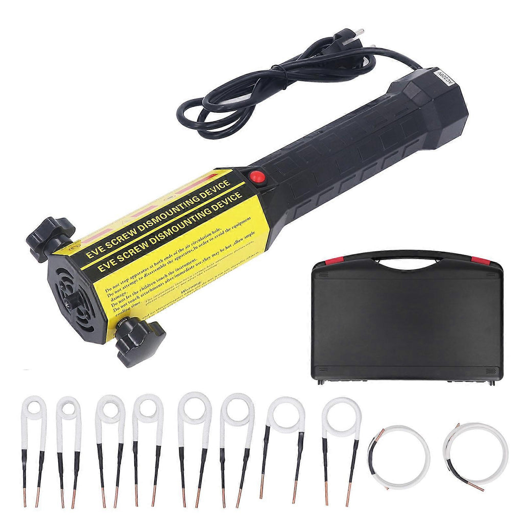 Feature:1. HIGH EFFICIENCY: Induction heater uses electromagnetic fields to heat metal, which is faster, more accurate and more efficient than oxygen acetylene systems. No open flames caused by heating, ensuring safety.2. LED LIGHT: The induction heater has built in LED light at the end, which can provide lighting for the work area even when working in the dark.3. 10 COILS: Including 2 pieces 0.79in (20mm), 2 pieces 0.98in (25mm), 2 pieces 1.18in (30mm), 1 piece 1.38in (35 mm), 1 piece 1.57in (40mm), 2 pieces 29.53in (750mm) length free forming coil.4. COOLING SYSTEM: Flameless heating tool is equipped with cooling fan and overheating protection, will not damage nearby thermal sensors. Enhanced thermally stable shell enhances both internal and external durability.5. WIDE PURPOSE: Magnetic induction heater is mainly used to heat nuts and rusty screws to loosen them, can also be used for automobiles, machinery, and various small metal parts such as gears, pulleys, bearings, etc.Specification:Item Type:Material: Flame Retardant ABS, BrassModel: FH 1000Maximum Output Current: 150AWorking Frequency: 50-60HzRated Power: 1800WHeating Temperature: 1200Time Required For Heating At 1200: 5-40 Seconds (Larger Objects Require Longer Time)Heating Bolt Diameter: For the coil can be wrapped, can be adjusted freelyAmbient Temperature: -40 to 60Relative Humidity: <95% RHAtmospheric Pressure: 86KPa to 100KPaFunction:1. With soft start function, long service life in case of frequent starts2. With IGBT overcurrent protection function3. With input and output overcurrent protection, automatic adjustment, negative feedback function4. With IGBT over temperature protection function5. With heating coil short circuit protection function6. With heating coil open circuit protection function7. Full bridge series resonant circuit topology, strong anti interference ability8. Using high performance IGBT driver chip, accurate driving and output waveform9. Automatic identification of load and phase locked function to achieve high power factor at the load end, and to enable circuit control to work efficiently in weak inductive areas10. Several electromagnetic heating controllers are installed in parallel on the same heating tube without interfering with each other11. Good Power Saving Effect: Compared with the currently used electric heating coils, the power saving can achieve over 30%12. Easy Installation: Can be connected to induction coils with bucket and flat plate structures, etc..Package List:1 x Magnetic Induction Heater10 x Heater Coil2 x Screw1 x Storage Box1 x User Manual
