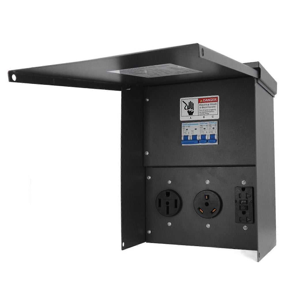 RV Power Outlet Box Weatherproof Temporary Electrical Power Outlet Panel with 20A 30A 50A 125V 250V Socket