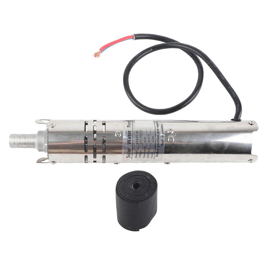 Feature:1. Possess wide working voltage, the voltage range of 24v water pump is 18v45v, the best working voltage is about 36v2. Submersible pump come with builtin MPPT controller, can make full use of solar energy3. Provide overvoltage protection/undervoltage protection, if the voltage is too high or too low, the pump will automatically stop working, and then check the voltage every 5 minutes. When the voltage returns to normal, it will automatically start to work4. The pump can be directly connected to the solar panel without the need to install batteries in the sun, very practical5. Stainless steel material have corrosion resistance, heat resistance, high and ultralow temperature resistanceSpecification:Item Type: Submersible PumpMotor: Permanent magnet DC brushless motorMaterial: Stainless steelPerformance: AutomaticDrive Mode: ElectricModelTypeWorking voltagePowerFlowLift(approx.)Water inlet(approx.)Water outlet(approx.)Diameter x length(approx.)Cable(approx.)Recommended solar panelS242T-20Submersible Pump24v(18-45v)190w2m/h20meter / 65.6ft76mm / 3in25mm / 1in76 x 499mm / 3 x 19.6in1meter / 3.3ft290w-380w36VS243T-20200w3m/h20meter / 65.6ft76 x 510mm / 3 x 20.1in300w-400w36VS242T-30220w2m/h30meter / 98.4ft76 x 512mm / 3 x 20.2in330w-450w36VS243T-30260w3m/h30meter / 98.4ft76 x 514mm / 3 x 20.2in390w-520w36VS242T-40284w2m/h40meter / 131.2ft76 x 516mm / 3 x 20.3in430w-570w36VS243T-40320w3m/h40meter / 131.2ft76 x 518mm / 3 x 20.4in480w-640w36V.Package List:1 x Water Pump1 x Waterproof Cement1 x User ManualNote:It is strictly forbidden to run the pump under dry conditions, and the damage caused by this situation is not within the scope of the warranty.