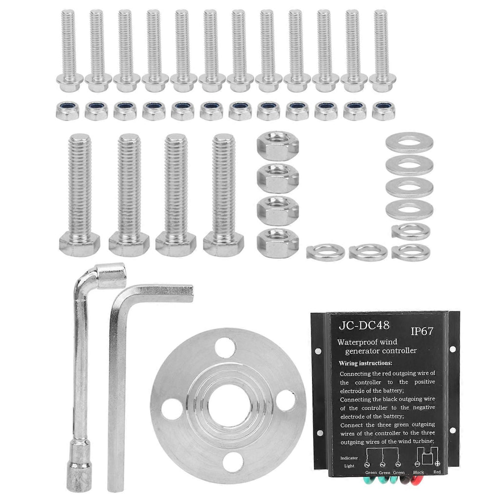 Feature:1. The small wind generator has a slow startup speed; high wind energy utilization; beautiful appearance; low vibration.2. This 6blade windmill generator adopts a humanized design, which is easy to install, maintain and repair. Used for boats, terraces, cabins or mobile houses charging, etc.3. 6 Precise blades, combined with optimized design of aerodynamic shape and structure, can increase annual power generation.4. This generator adopts a permanent magnet rotor alternator with a special stator design, which effectively reduces the drag torsion.5. The AC permanent magnet generator makes the wind generator and the generator match well and improves the reliability.Specification:Item Type: Windmill Turbines GeneratorRated Power: 800WStarting Wind Speed: 2.0m / sRated Wind Speed: 12m / sSurvival Wind Speed: 50m / sNumber of Blades: 6PcsBlade Length: Approx. 550mm / 21.7inBlade Material: Nylon fiberGenerator: 3-Phase AC permanent magnet synchronous generatorController System: Electromagnetic/yawAdjustment Method: Automatic adjustment of wind direction angle.Working Temperature: -40-80Package List:1 x Motor6 x Blade1 x Controller1 x Blade Cover1 x Gasket1 Bag Fastening KitNote:1. There is an antiloosening device in the front section of the locking nut of the installation blade, which will be tight when screwed, but must be screwed to the end.2. The height of the wind turbine needs to reach 6 meters.3. Installation of wind turbines need to try to install in the area of high wind energy density.