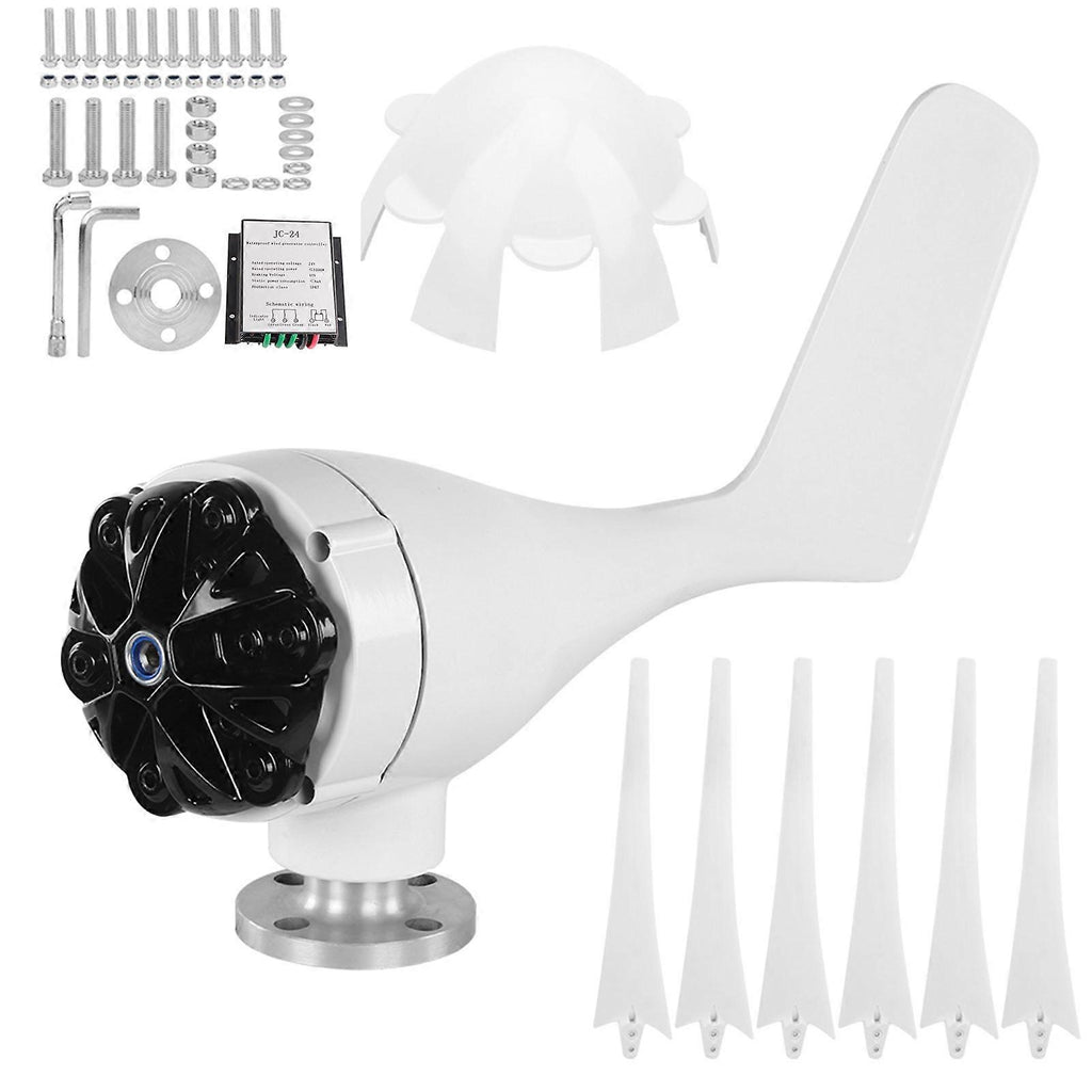 Feature:1. The small wind generator has a slow startup speed; high wind energy utilization; beautiful appearance; low vibration.2. This 6blade windmill generator adopts a humanized design, which is easy to install, maintain and repair. Used for boats, terraces, cabins or mobile houses charging, etc.3. 6 Precise blades, combined with optimized design of aerodynamic shape and structure, can increase annual power generation.4. This generator adopts a permanent magnet rotor alternator with a special stator design, which effectively reduces the drag torsion.5. The AC permanent magnet generator makes the wind generator and the generator match well and improves the reliability.Specification:Item Type: Windmill Turbines GeneratorRated Power: 800WStarting Wind Speed: 2.0m / sRated Wind Speed: 12m / sSurvival Wind Speed: 50m / sNumber of Blades: 6PcsBlade Length: Approx. 550mm / 21.7inBlade Material: Nylon fiberGenerator: 3-Phase AC permanent magnet synchronous generatorController System: Electromagnetic/yawAdjustment Method: Automatic adjustment of wind direction angle.Working Temperature: -40-80Package List:1 x Motor6 x Blade1 x Controller1 x Blade Cover1 x Gasket1 Bag Fastening KitNote:1. There is an antiloosening device in the front section of the locking nut of the installation blade, which will be tight when screwed, but must be screwed to the end.2. The height of the wind turbine needs to reach 6 meters.3. Installation of wind turbines need to try to install in the area of high wind energy density.