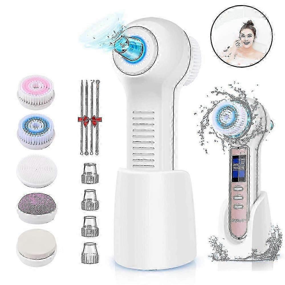 Product Shell material: ABS Brush head material: DuPont wool Size: 24.8 * 12.7 * 8.2 cm Gear position: 3 gears Product Features: Blackhead Cleansing Brush 2-in-1 Color: white + pink Quantity: 1 pcs Package content: 1 pcs * Massage cleansing brush, 5 pcs * Brush head, 4 pcs * Interchangeable suction head, 4 pcs * Needle, 1 pcs * USB data cable, 1pcs * User manual 1. Material safety 2 in 1 face cleaning brush, blackhead remover, pore cleaner is made of ABS material, which is harmless to the environment and does not cause any physical or chemical damage to the skin. It is suitable for people of all skin types and you can use it with confidence. It's small, portable, and easy to use, which makes it a smart choice for gifts to family and friends. 2. Blackhead Remover Pore Cleaner The vacuum cleaner for acne removal of blackheads is equipped with 4 exchangeable suction tips and probe sets for acne removal, 3 vacuum suction modes (rest, acne, blackheads). the large screen LED settings and check the remaining battery power. 3. Cleaning function The blackhead remover has 5 different cleaning brush heads and 3 cleaning modes (gentle, daily and deep cleaning). The cleaning brush can be rotated 360 to clean and remove cuticles, blackheads, oils, etc. 4. Comfortable design This blackhead remover pore cleaner is ergonomically designed, comfortable to hold, sensitive brush can cover more skin area; The vacuum technology with stronger suction and deeper cleansing of your skin helps you solve all common types of skin problems on the face including stubborn blackheads, whiteheads, acne, grease. 5. Waterproof and ultra-long standby mode Blackhead sucker pore cleaner With the waterproof IPX7 function, it can be used safely in the bathtub or shower. The USB charging cable is easy to transport and charge. After a full charge within 3 hours, the rechargeable 1000 mAh battery can keep the cleaning brush in soft mode for 20 days.