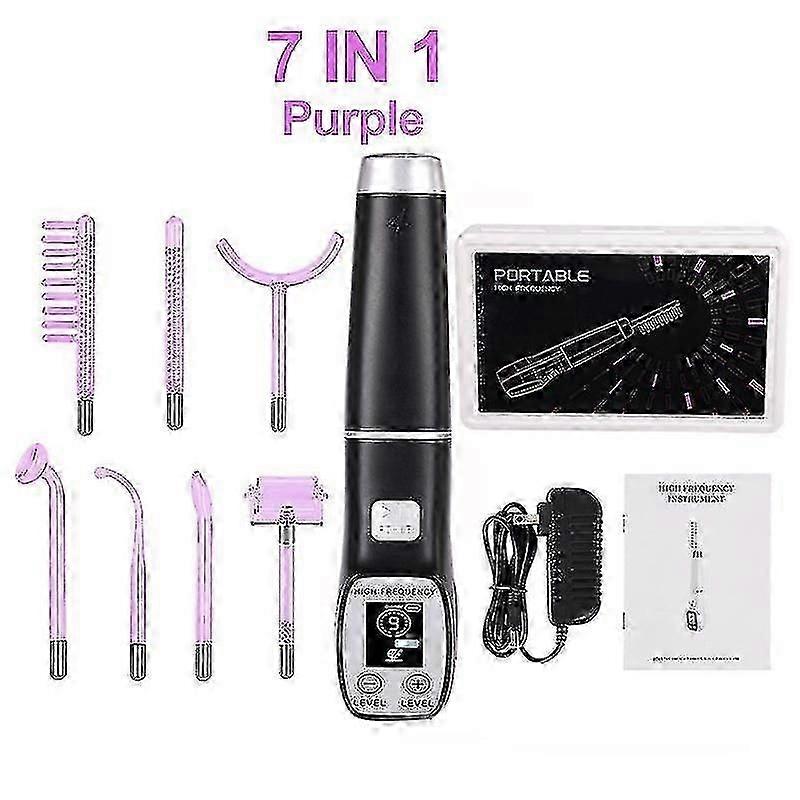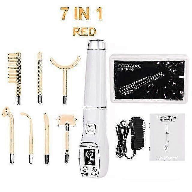 Apparatus Electrotherapy Wand Glass High Frequency Facial Machine Face Massager Neon Remove Wrinkles Acne Tool Hair Skin Care & 65306; 1& 65306;Portable high-frequency machine through new fusion glass electrode tube (Ar+Ne) to produce high-frequency current, accelerate the blood circulation and the metabolism to Anti-acne treatment and promote acne healing, reduce wrinkle and tighten skin, prevent hair loss and stimulate grow new hair. 2& 65306;Different Types ELECTRODES PREPARED FOR YOU different glass electrodes apply to various body parts: spoon electrode, extra way to eliminate acne and treat pimples; mushroom electrode, treat the forehead and cheek; bent electrode, treat the nasal fossa and reduce the appearance of acne; Y shape electrode, for the shoulders and neck area; comb electrode, to stimulate hair follicles and diminish hair loss. 3& 65306;SAFE, PORTABLE, COMFORTABLE, AND SIMPLE TO USE High-Frequency Skin Therapy Wand Machine uses the fusion of orange red Neon gas and violet Argon gas electrodes are generally used for the treatment of skin aging. The quality materials make it safe, comfortable, natural, and recyclable. For one part, the treatment should be less than 10 seconds. (NOT SUITABLE CROWD& 65306; Pregnant woman & children & Persons with cardiac pacemaker.) PRODUCTPARAMETERS Product Name: Screen display electrotherapy stick Product Model: SC1053 Product Color: black, white Working voltage: 100-240V Frequency: 50-60HZ Vibration frequency: 2.2 Million times/second Power: 10W Single size: 29.5 * 19.2 * 5.9CM Single weight: 0.75KG Package: Handle * 1 Glass tube * 1 set Charger * 1 Manual * 1 Functions 1) Reduces skin irritation 2) Eliminates acne and pimples 3) Accelerate blood circulation and improve metabolism. 4) It helps to calm the nerve and has analgesia function. 5) Has the function of anti-aging, anti-wrinkle and skin-tightened. 6) Improve secretion, the PH value causes the skin lean to neutrality. 7) It produces the ozone for sterilization, can help wound to heal and to restrain pores. 8) To provide ozone sterilizing. To calm the nerve with analgesia. To remove the acnes and cure its wound. 9) To improve the healthy growing of hair To accelerate the wound and inflammation healing. Function Straight Tube Used for facial or body asacupuncture point massage Y-shaped Tube Used for body area , such as neck . arms and legs or other area that can be put in between Tongue Tube Due to the unigue design of the tongue tube itself , it can concentrate the current on the flawed parts and dilute the flaws through high-fre action Bent Tube The bent wand mainly deals with the nasal grooves ,because the nasal grooves are relatively narrow , difficult to clean , and often oily .