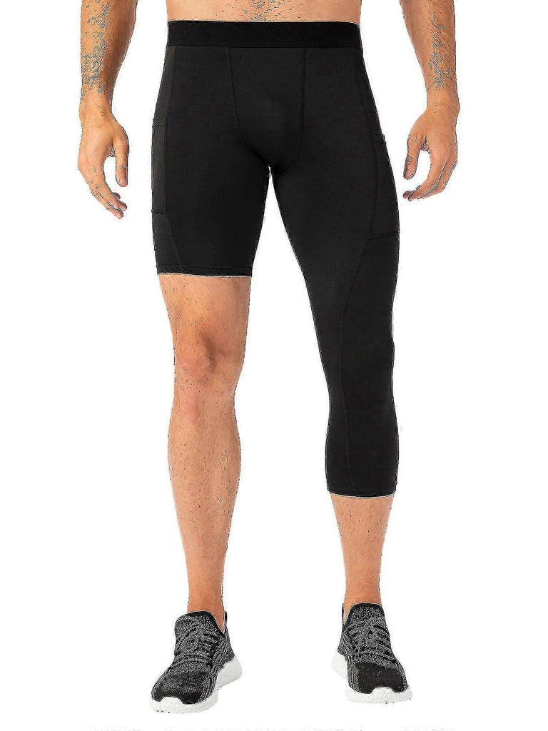 Men One Leg Leggings Fitness Pants For Basketball Side Pockets Fitness Training Single Leg Tights Multiple Sizes Available