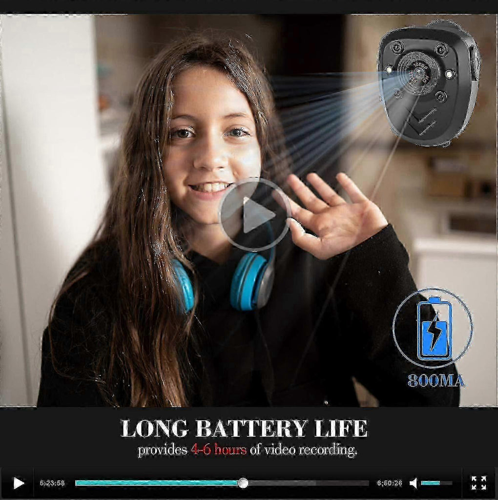 Loop recording & 32GB large memory, built-in 32GB built-in storage, can record for hours continuously, no need to worry about lack of space. When the capacity of the memory card is less than 400MB, the oldest videos will be deleted to free up space to save new videos, no longer worry about the SD card being full and stop recording. Easy to use, easy to operate, one button = record, double click = night vision on/off. The pocket body camera has only one button for video/night vision. When the memory card capacity is less than 400MB, the oldest videos will be deleted to make room for saving new videos, so you don't need to worry about the SD card being full and stop recording. Ultra-long battery life and strong power, the Mi Body Camera has a built-in high-quality 800mAh rechargeable battery, which can provide 4-6 hours of video recording. Support charging while recording, you can plug the body camera into a power bank, mini camera size, this full HD mini body camera provides you with excellent security during your upcoming shift as a security, police or bodyguard. It's designed with a great 360-degree swivel mount that can be easily used almost anywhere, whether it's at home, in the office, in the warehouse, in the classroom, in the corner of the backyard, or in the store, or even as a mini car camera Or a mini aerial camera. 1080P HD, night vision, 1080P HD recording, this body camera is equipped with high-intensity infrared LEDs, which can capture clear images up to 20 feet away even in pitch darkness.